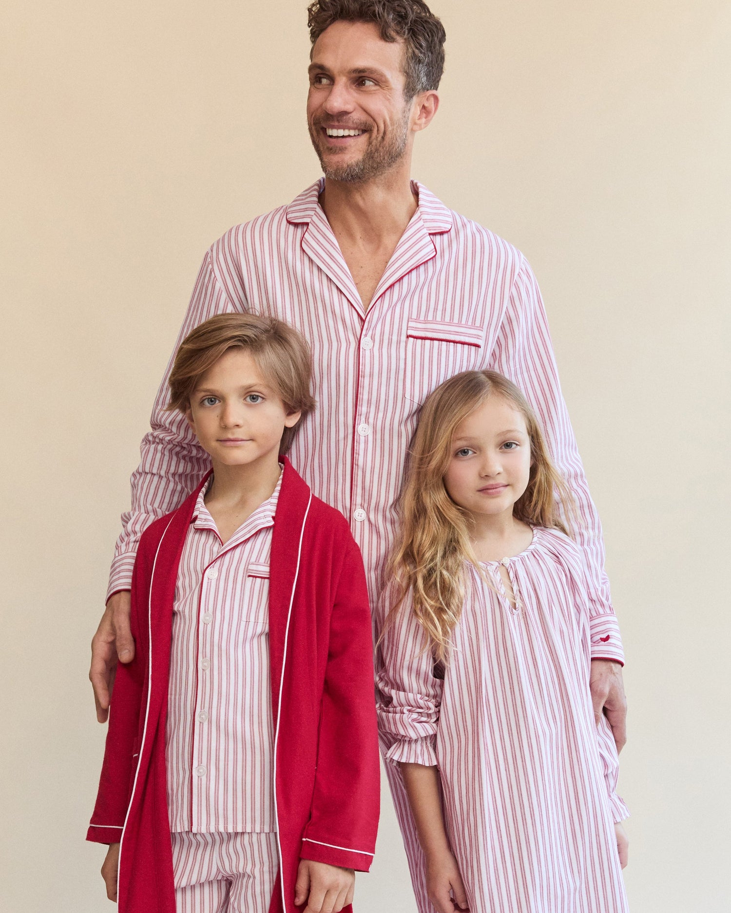 Men's Twill Pajama Set in Antique Red Ticking - XS is backordered and will ship as soon as it is back in stock.