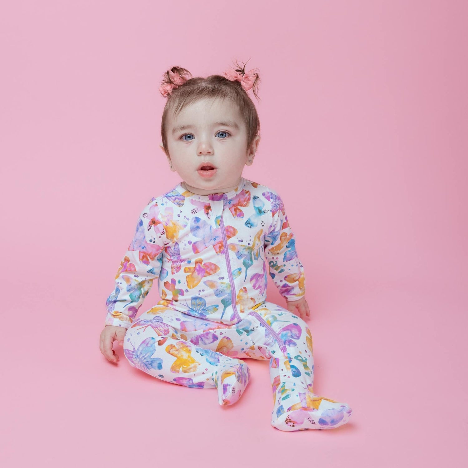 Organic Footie - Butterflies - Newborn is backordered and will ship as soon as it is back in stock.