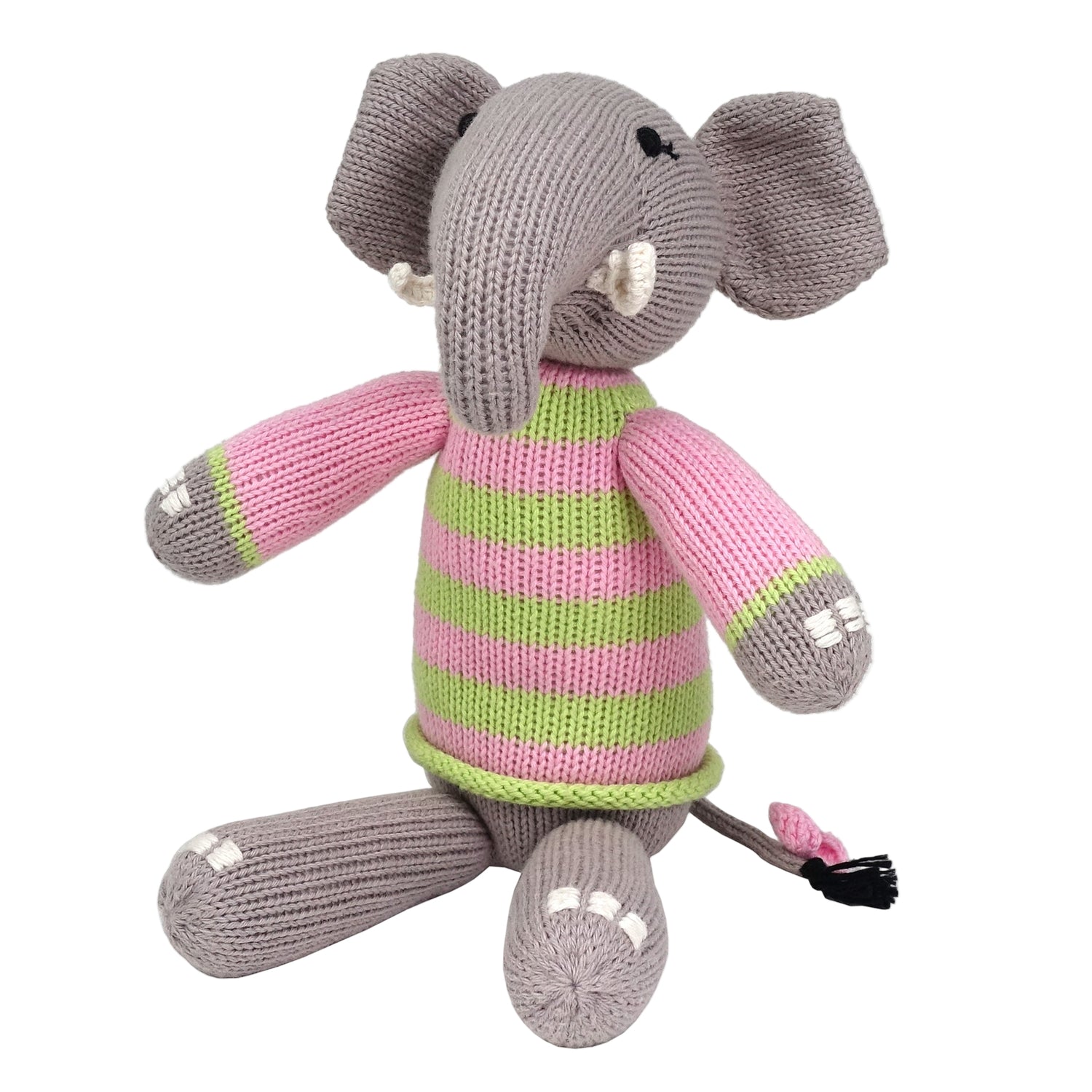 Adorable Elephant wears a pink and green striped sweater, ready for hugs and fun.
