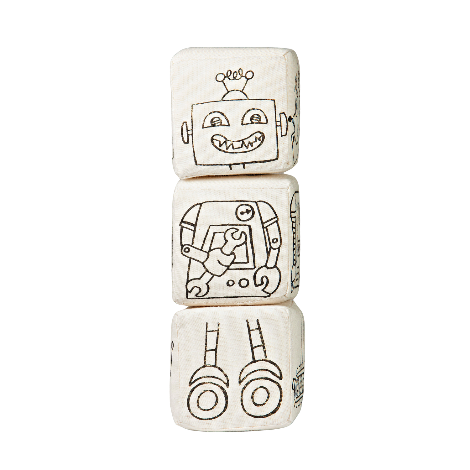 • They have cotton canvas fabric on the outside and are filed with a foam that is soft to be thrown and squeezed by little hands, but firm enough for them to color.