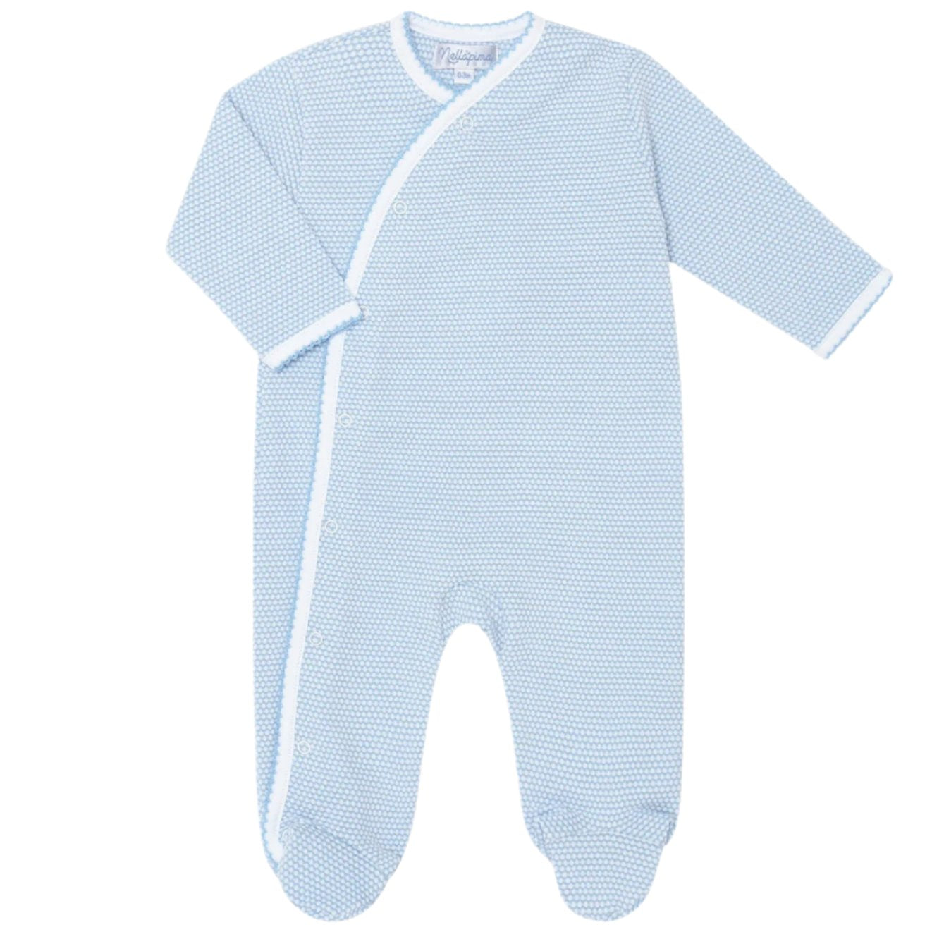 Our Blue Bubble Crossover Footie is not only adorable but also incredibly soft, comfortable, and easy to care for. It is made from the finest Peruvian Pima Cotton, making it perfect for babies who require extra care during their early years. This footie will shield them from dust and rashes while crawling and walking.
