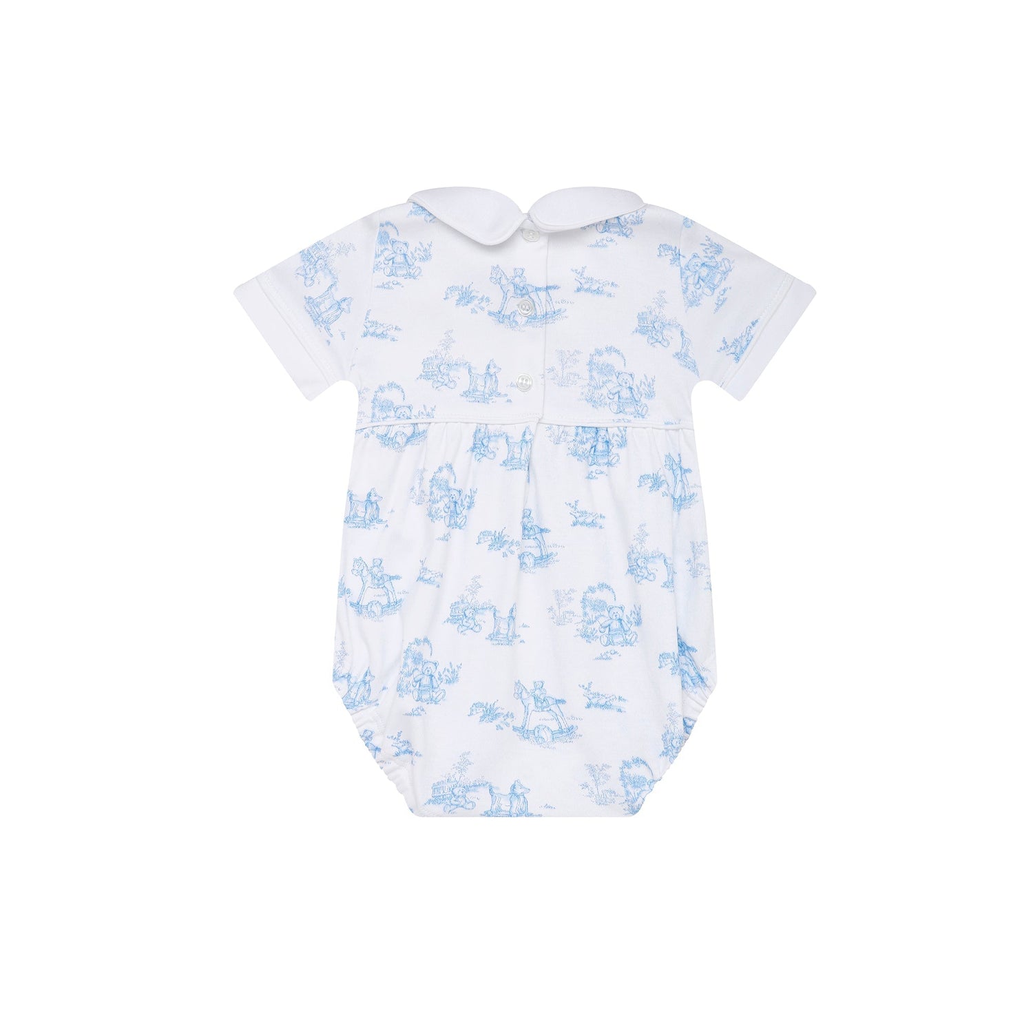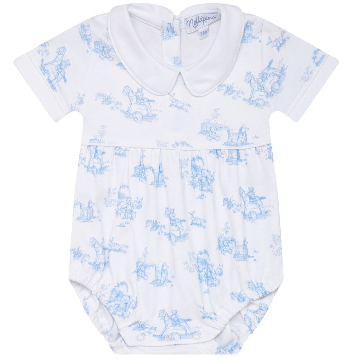 Indulge your precious little one in ultimate comfort with this Blue Toile Baby Bubble. Made from the gentlest Pima Peruvian cotton, this bubble is incredibly soft and gentle against delicate skin. The Blue Picot Trim fabric adds to its durability while snuggly holding your baby and providing the comforting feeling of a mother's embrace.