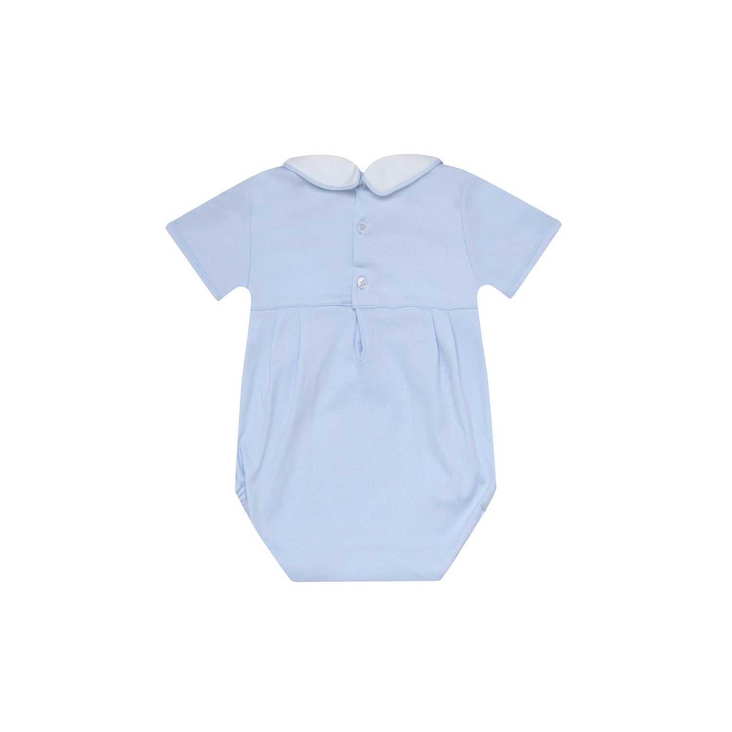 This bubble boasts an exclusive design of adorable sailboats meticulously crafted by hand embroidery. The baby Peter Pan collar is enhanced with elegant fagoting for a refined finish. Rest assured, your baby boy will look utterly charming in this bubble!