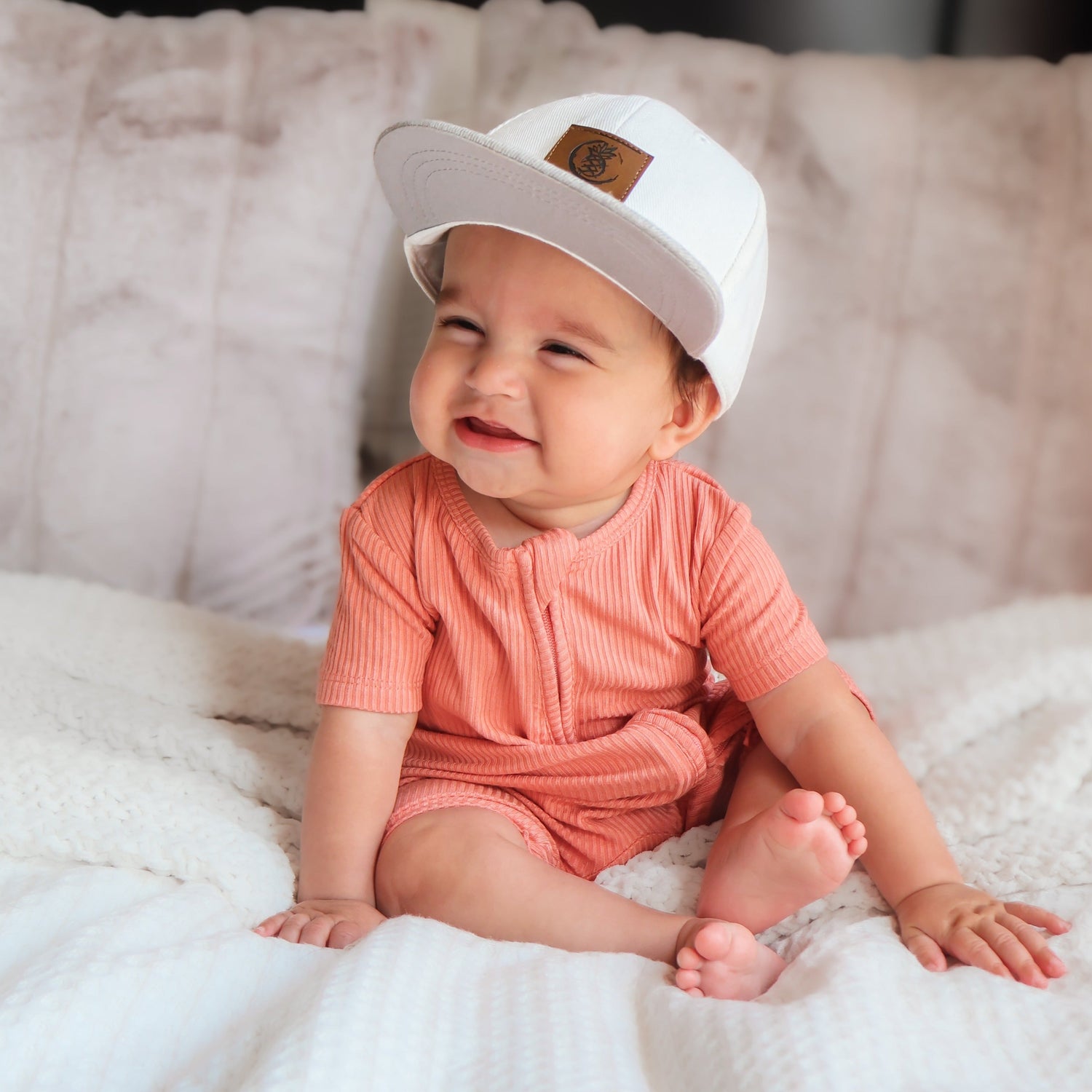 Introducing our Ribbed Shortie Zip Romper, crafted from breathable, silky smooth 95% Bamboo Viscose and 5% Spandex in custom prints. This short sleeve romper combines style, comfort, and convenience, making it a must-have for your little one's wardrobe.