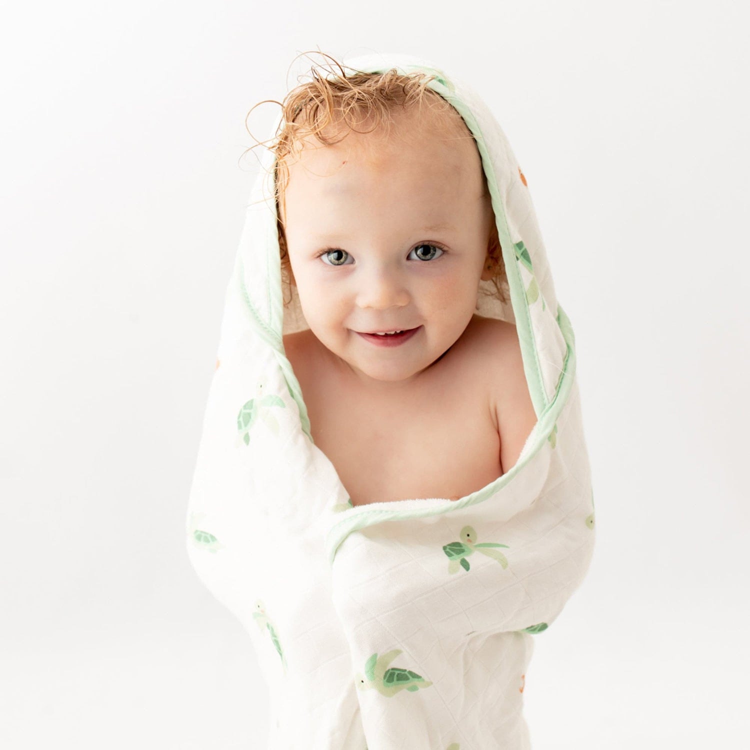 Bamboo Little's matching hooded towel and washcloth sets make bath time a joy. Each towel and washcloth features an ultra-absorbent and super-soft terry backing. The generously sized towels are perfect for babies with sensitive skin, offering natural moisture-wicking and odor-resistant properties, ensuring smiles long after the splashes are over.