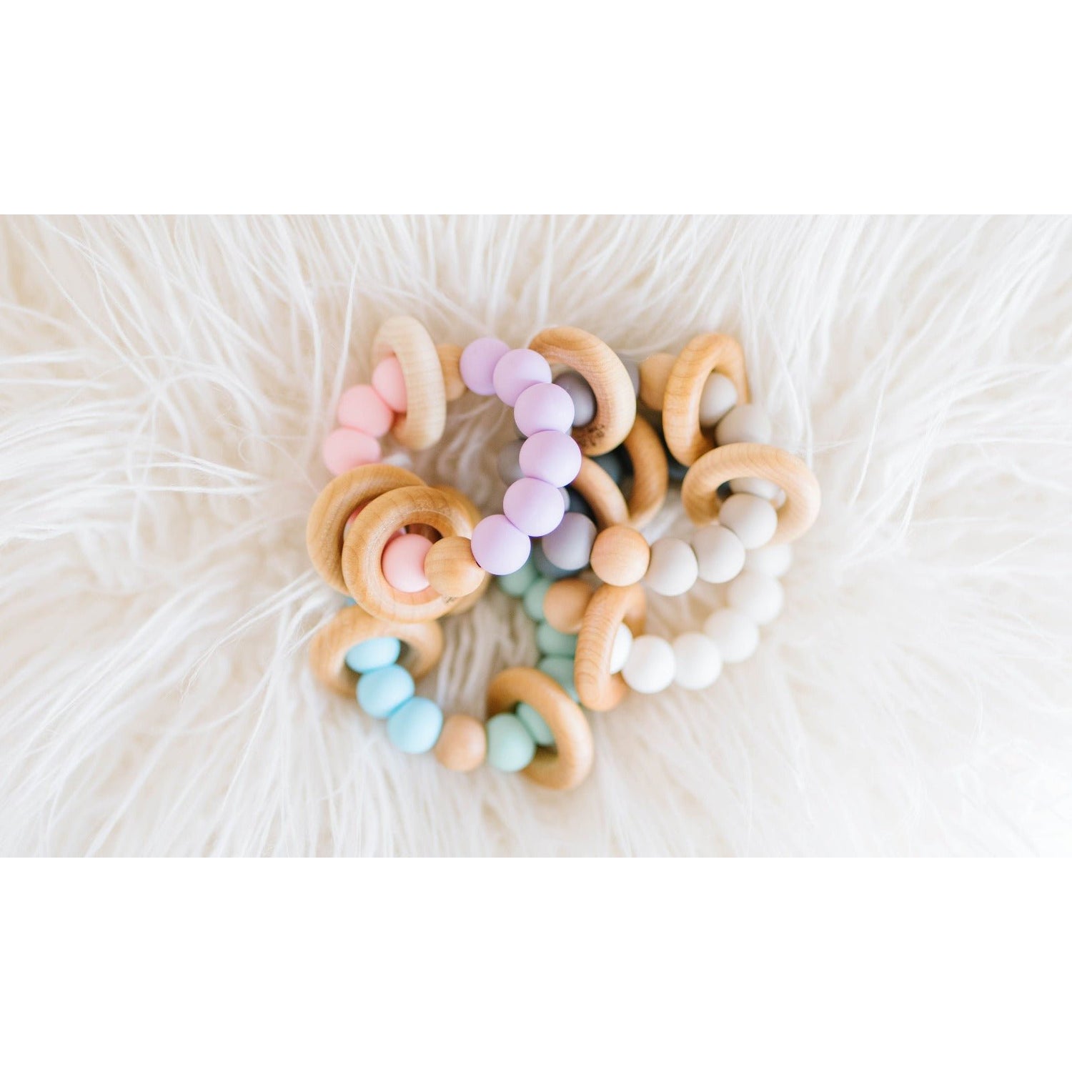 Made from silicone and wood beads, with wooden rings that make the sweetest sounding rattle this toy is sure to be the perfect gift for a new baby.  With its' light weight, young babes will be able to hold it!