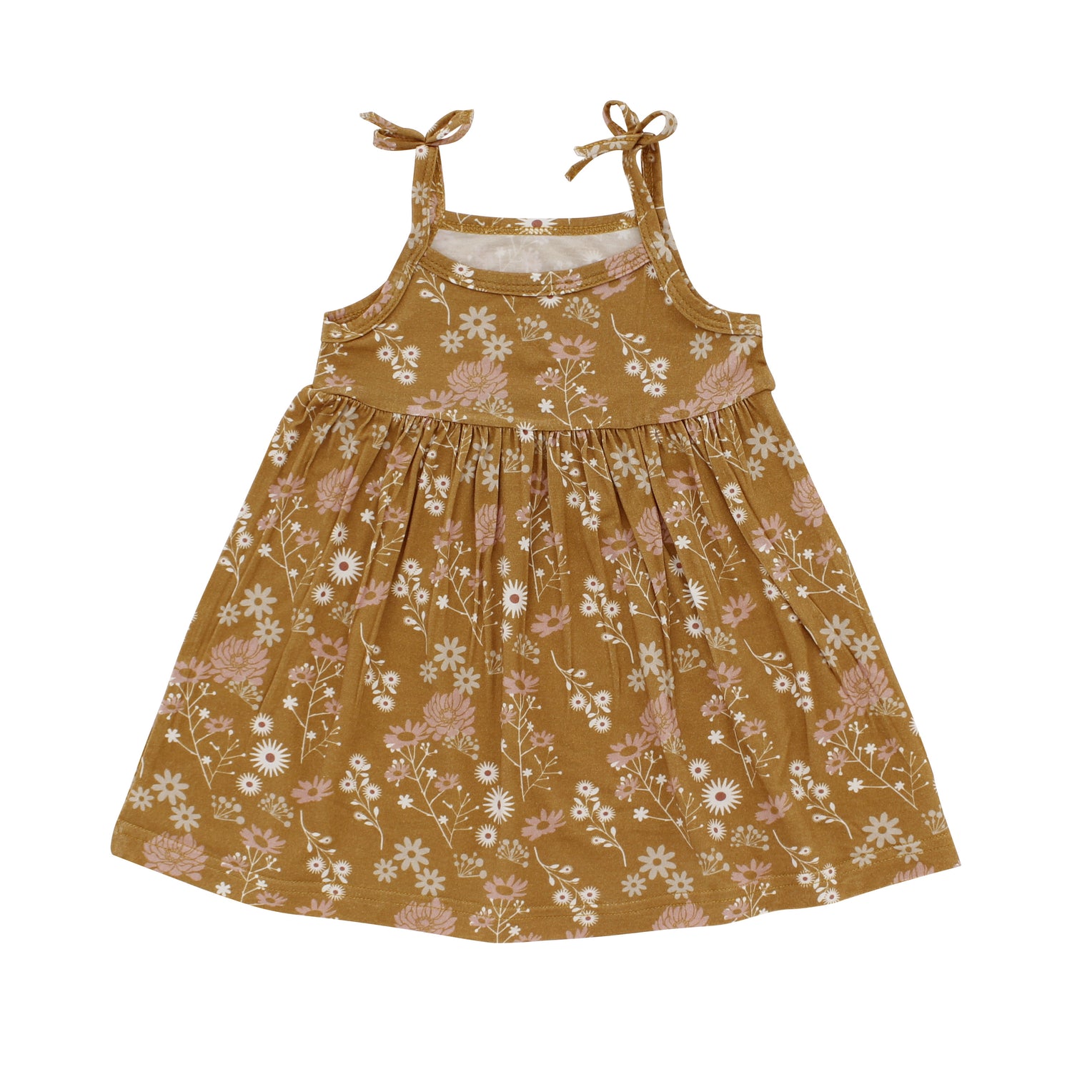 Mustard Floral Bamboo Dress Sundress - 2/3T is backordered and will ship as soon as it is back in stock.