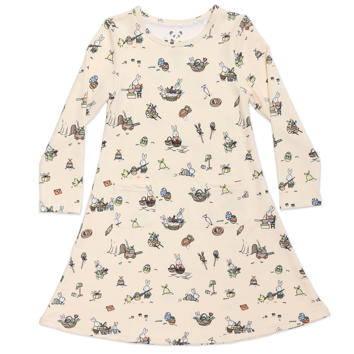 Bunny Workshop French Terry Girls' Daywear Long Sleeve Dress - HoneyBug