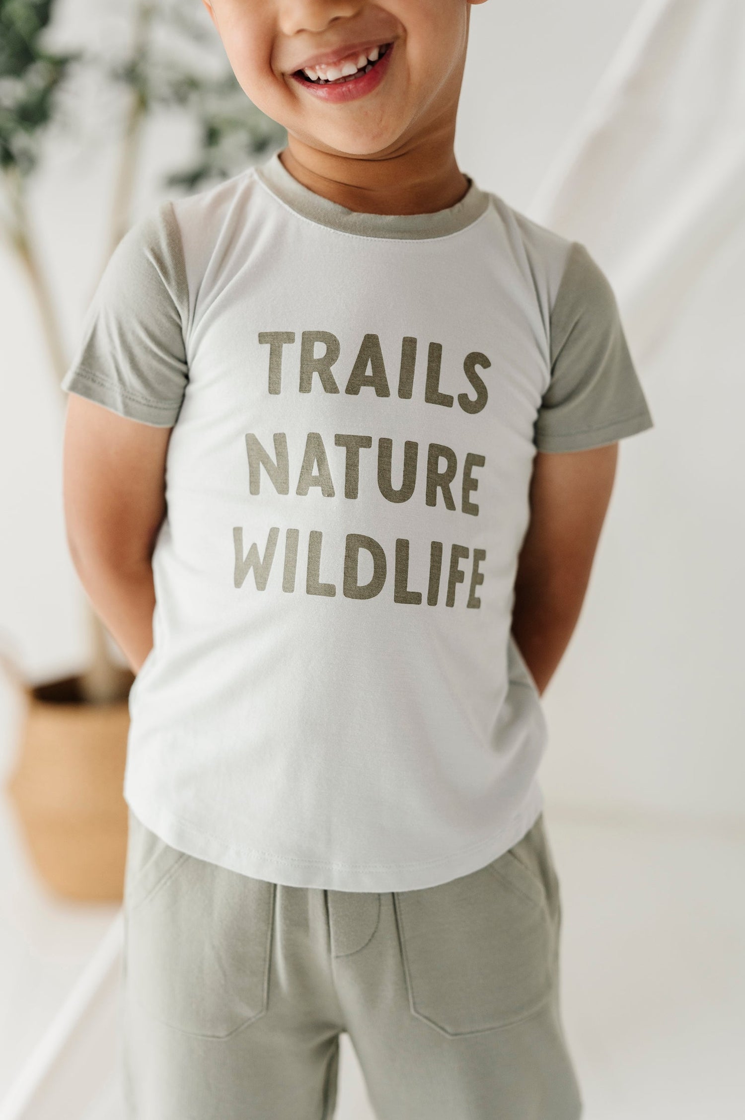 Colorblock Tee - Trails Nature Wildlife / 0-3M is backordered and will ship as soon as it is back in stock.