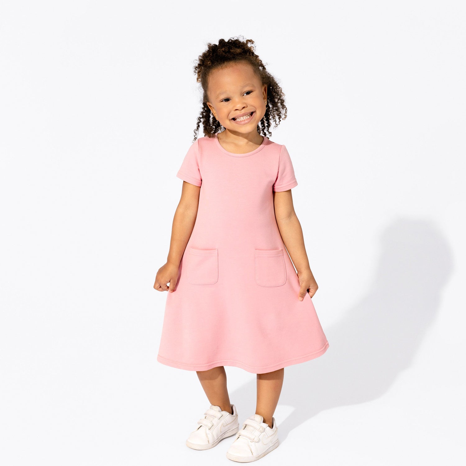 Dusty Rose Bamboo Terry Daywear Girls' Short Sleeve Dress - HoneyBug