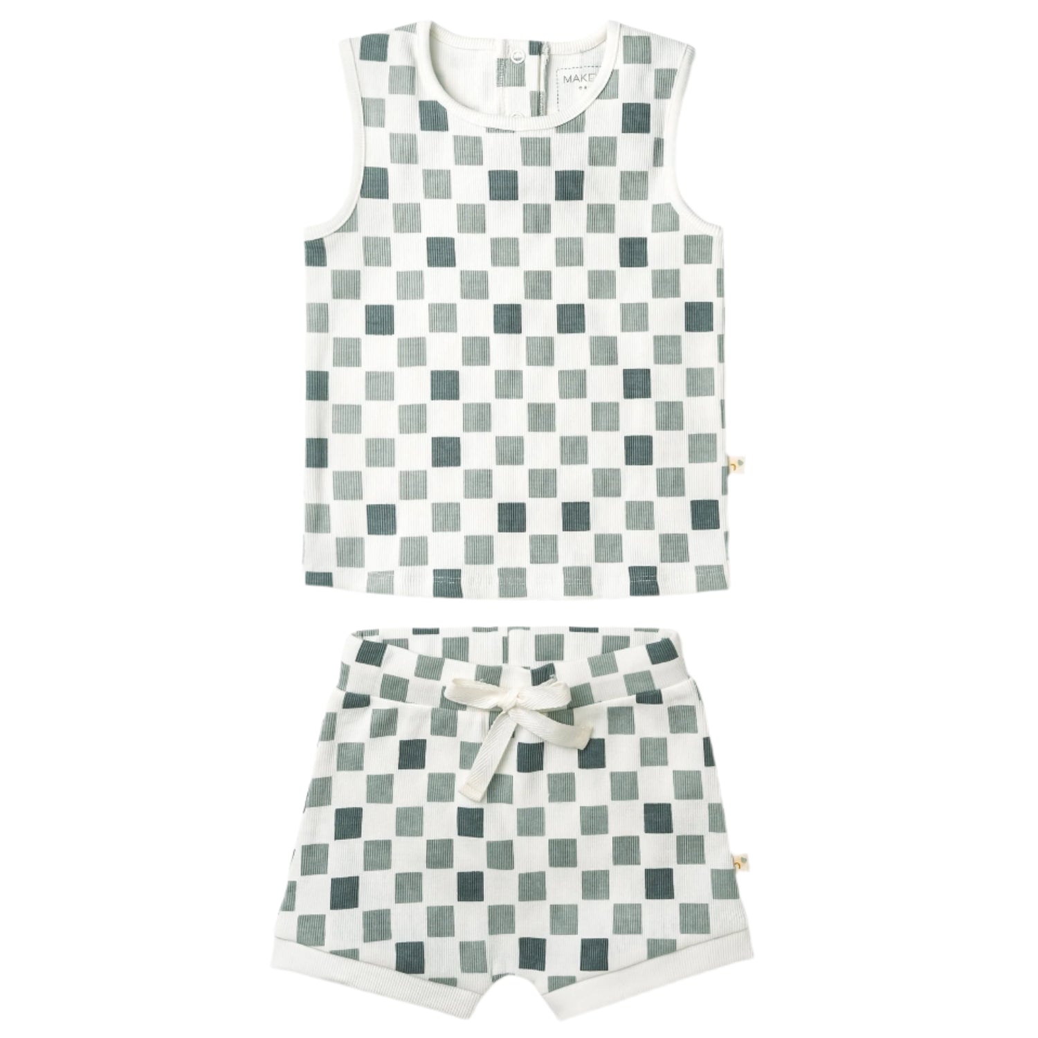 Organic Tank & Tee Shorts Set - Chequered - HoneyBug
