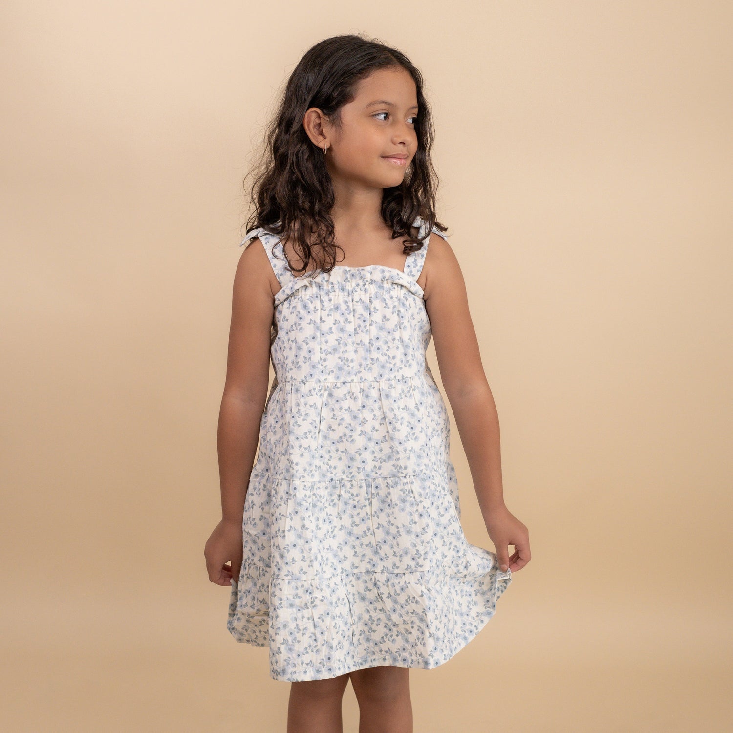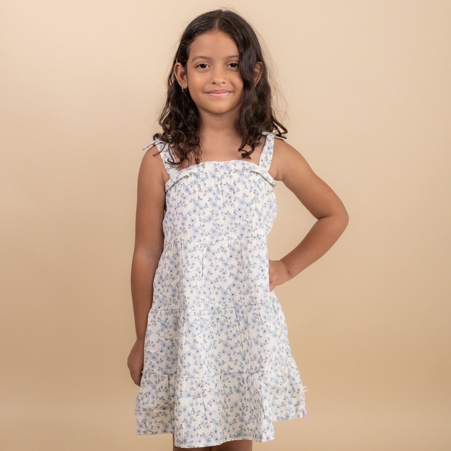 Organic Tiered Dress - Blue Vines - HoneyBug