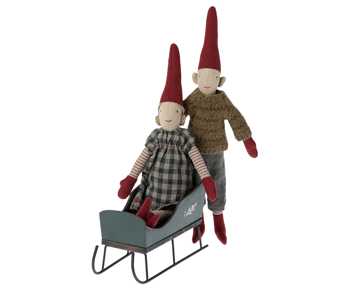 A lovely sleigh with a soft mattress to keep the passengers warm and comfortable during the ride. This sleigh fits the climbing and mini pixies perfectly. It has beautiful hand-painted details - variation may occur.