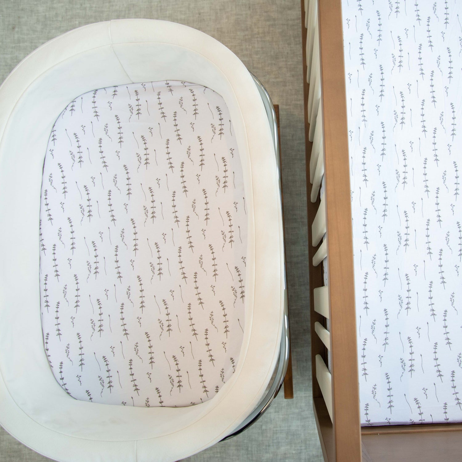 Bassinet Sheet Set - Forest Grey Leaf - HoneyBug