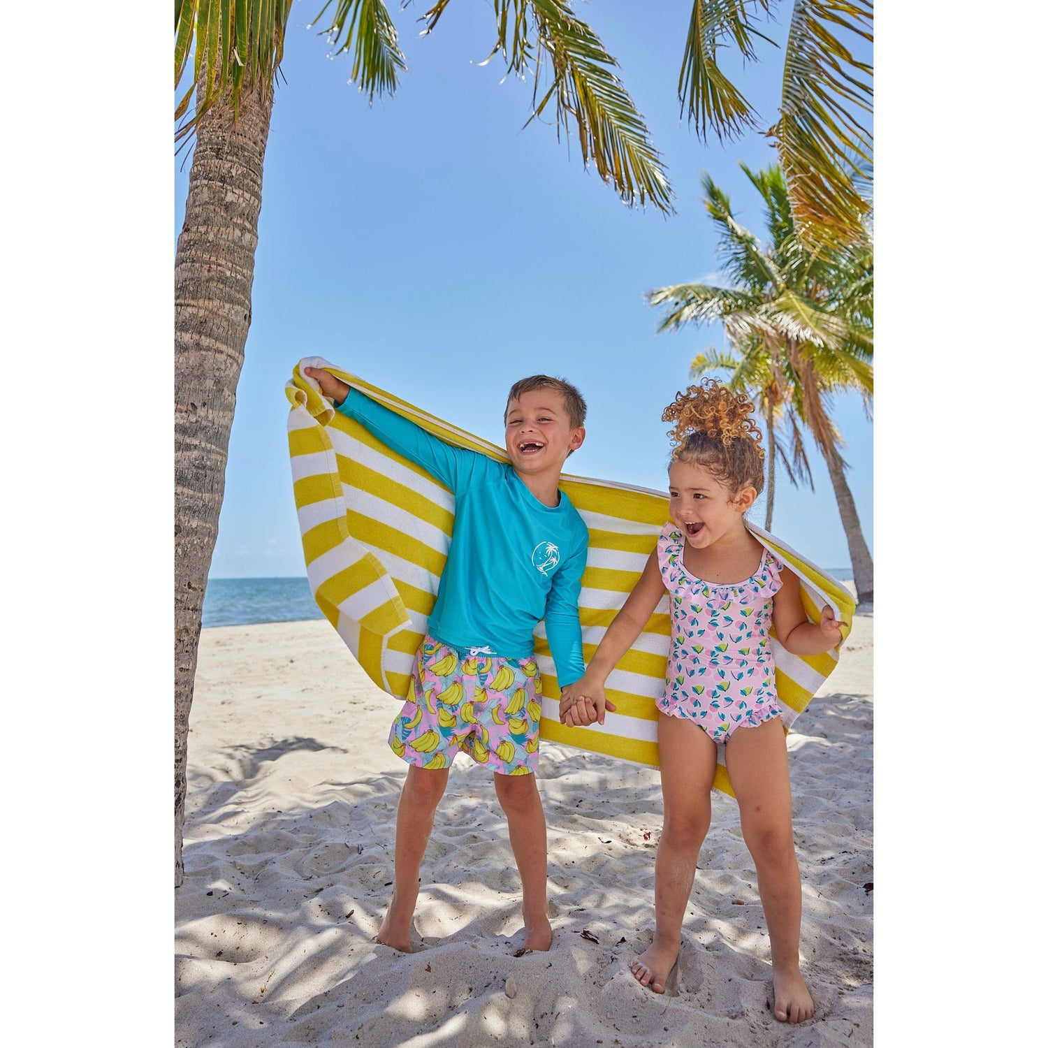Fabric: This design is made with our premium buttery soft UPF/SPF 50+ swim fabric which is composed of a blend of polyester and elastane giving this style durability, comfort and quick drying capabilities. We love this fabric for its anti-pilling & chlorine-resistant properties!