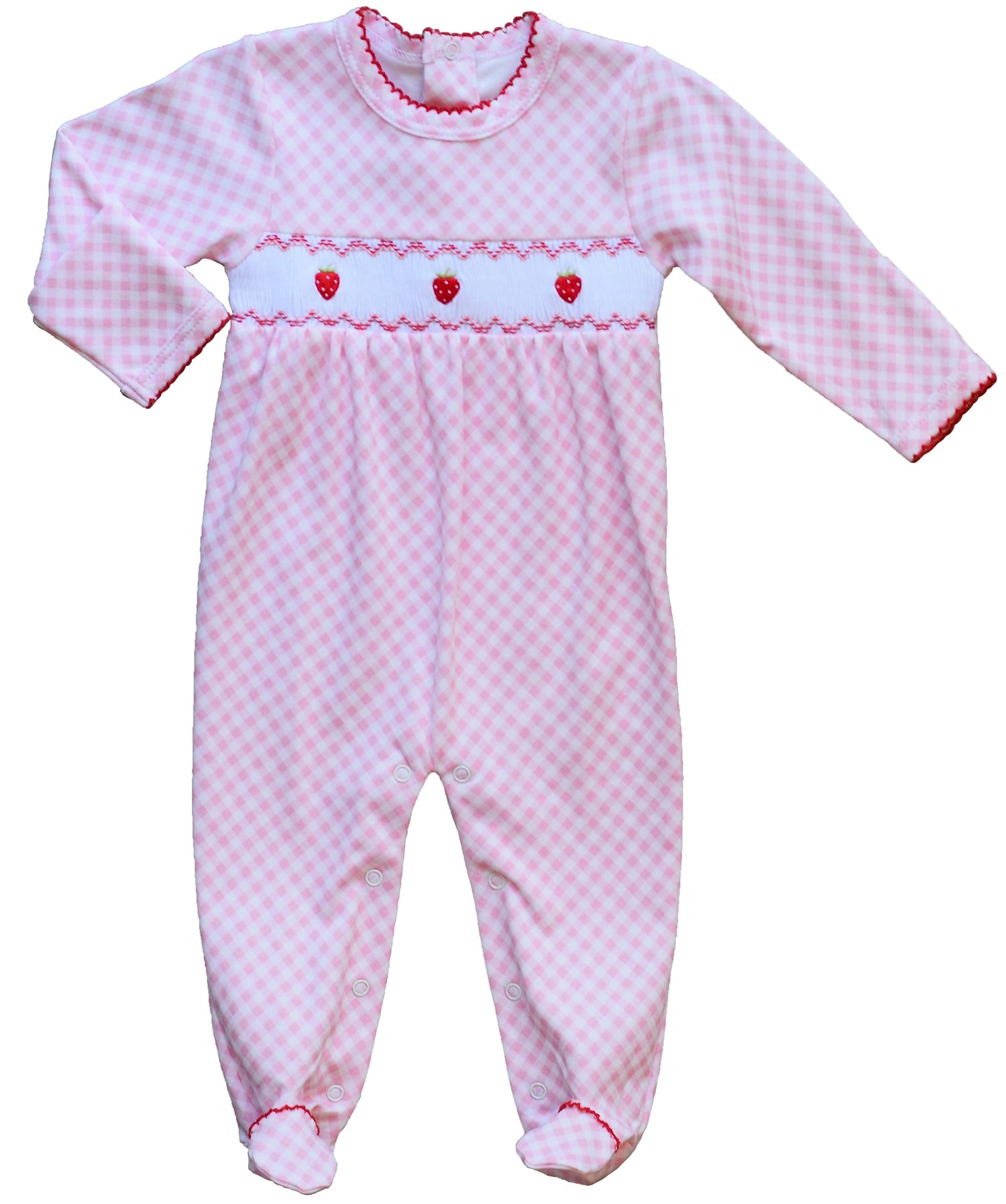 Pink Gingham Strawberry Smocked Footie