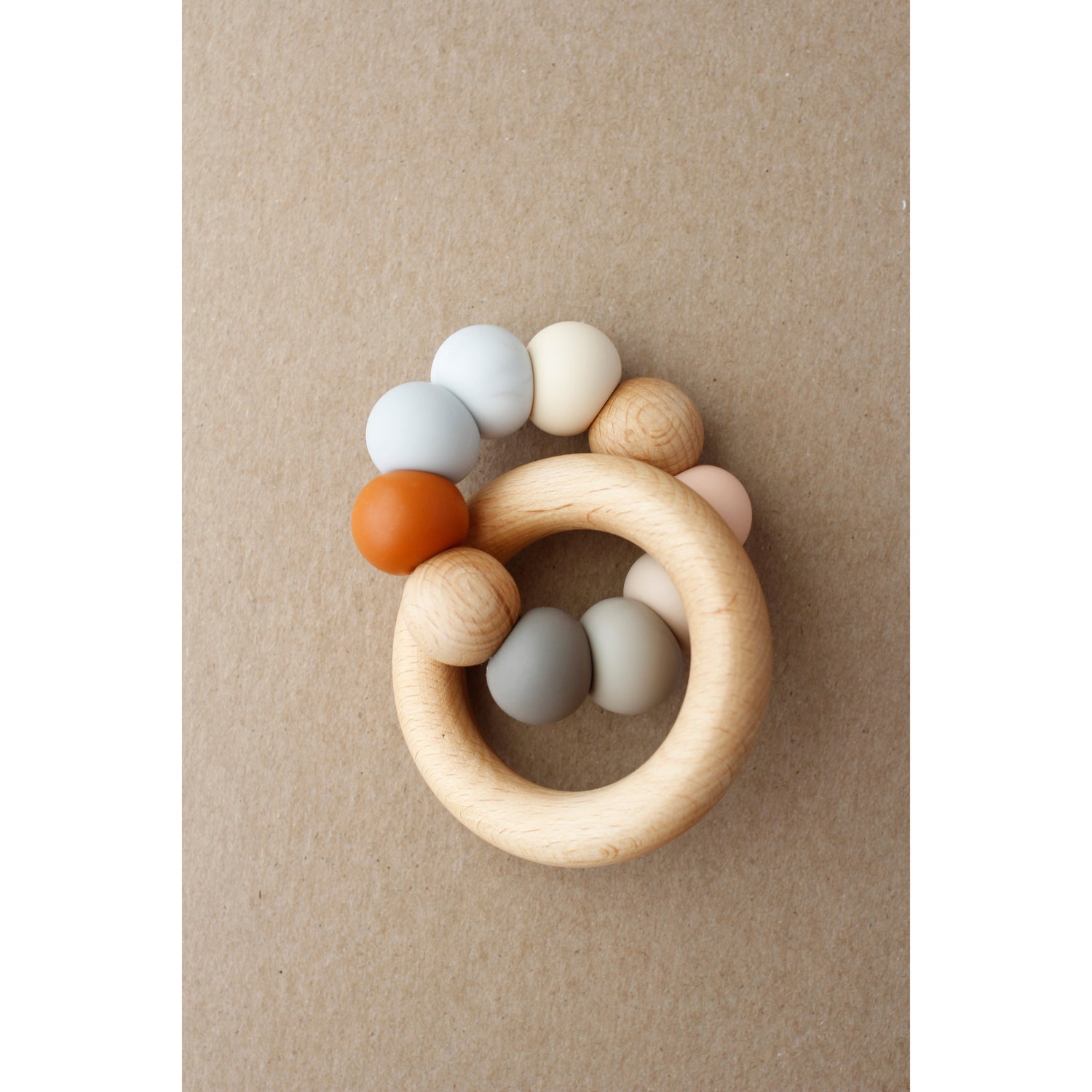 Our Caroline teether is a mix of soft silicone and beechwood that have been treated with beeswax. Teether was designed with safety in mind witch will helps to soothe and comfort the baby's tender gums. The simple design is easy for small hands to grab, hold and explore! We recommend treating wood with beeswax or coconut oil for smoothness and longer-lasting!