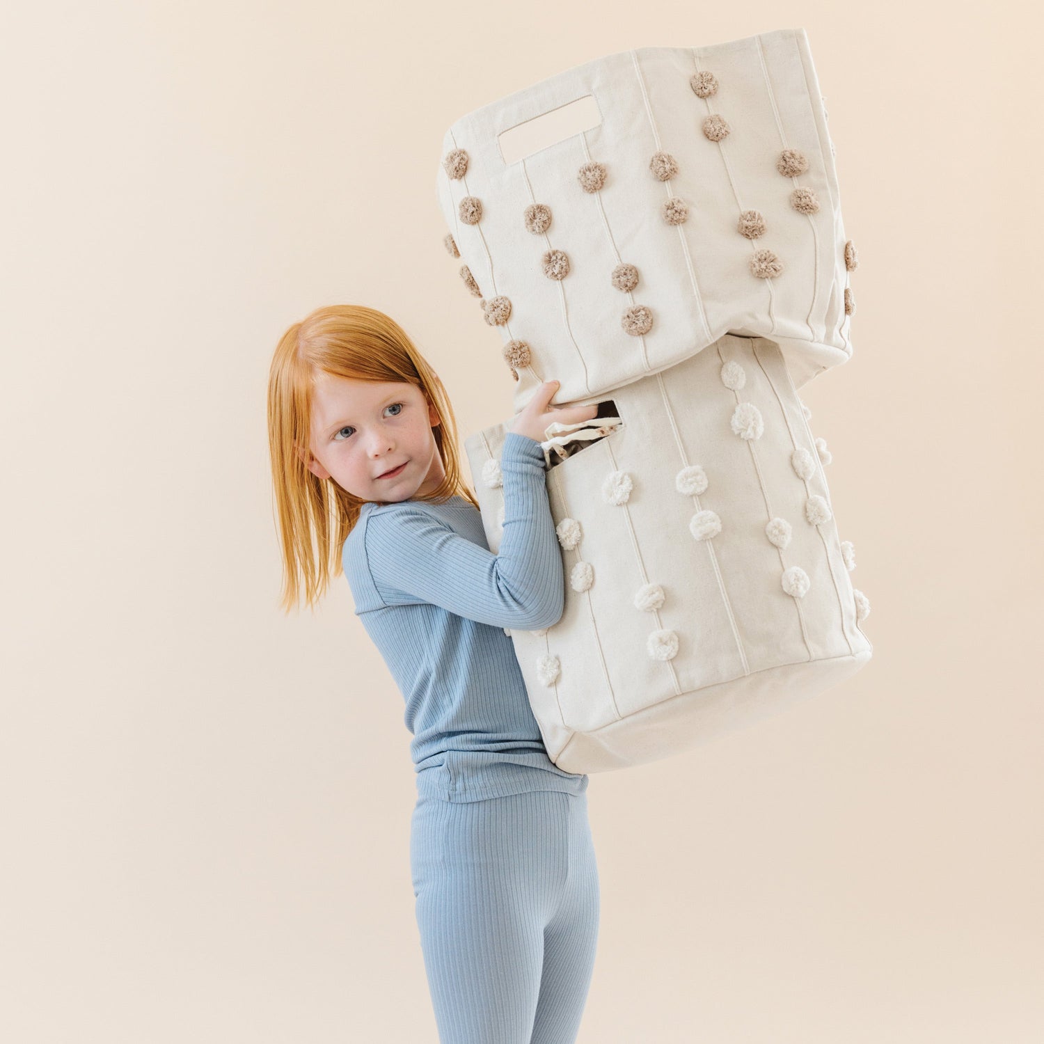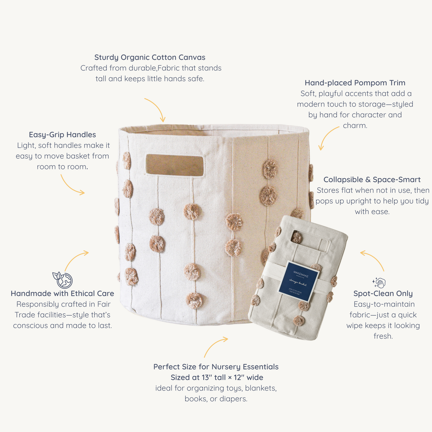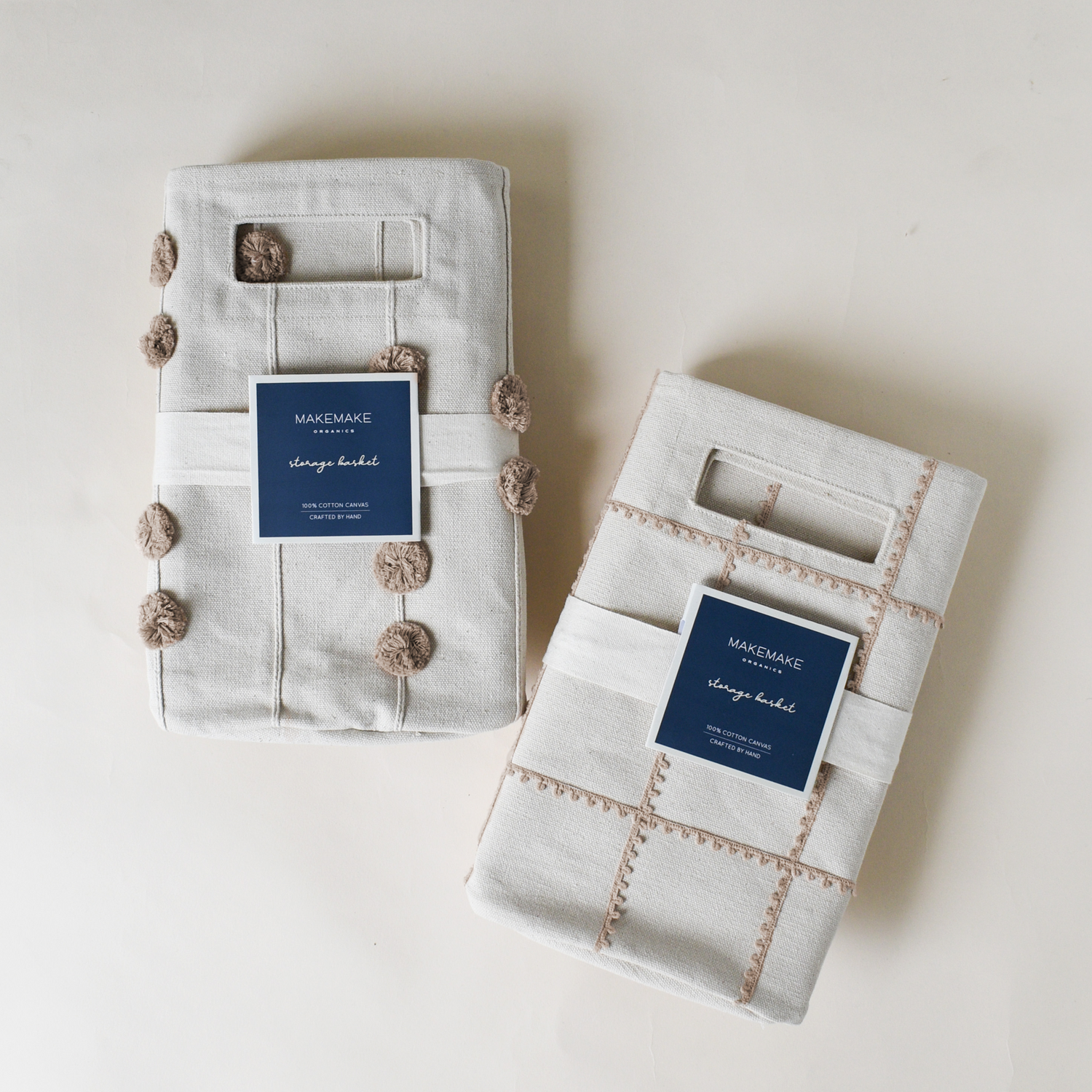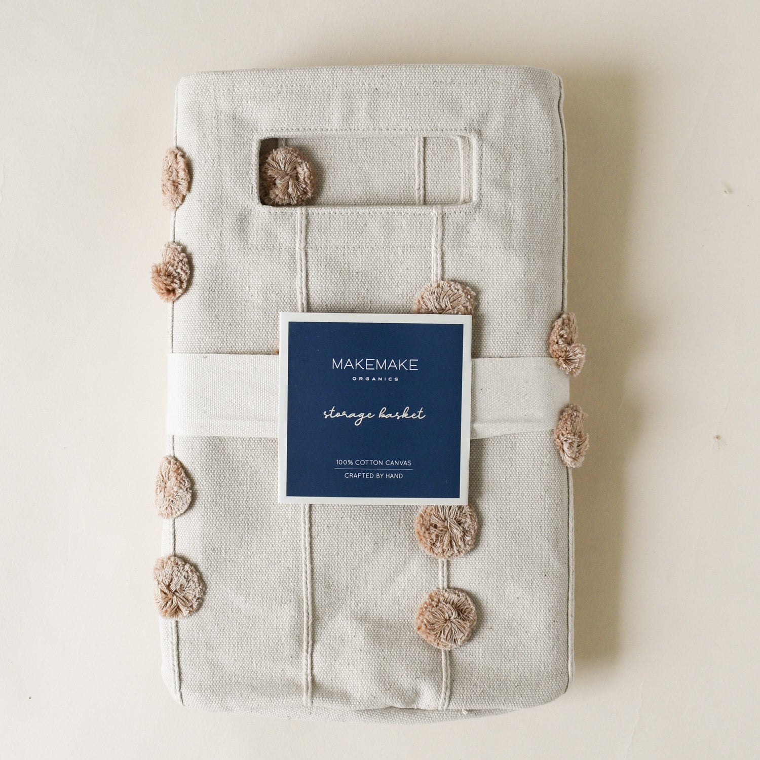 Handmade Canvas Storage Basket Pom Pom - Taupe