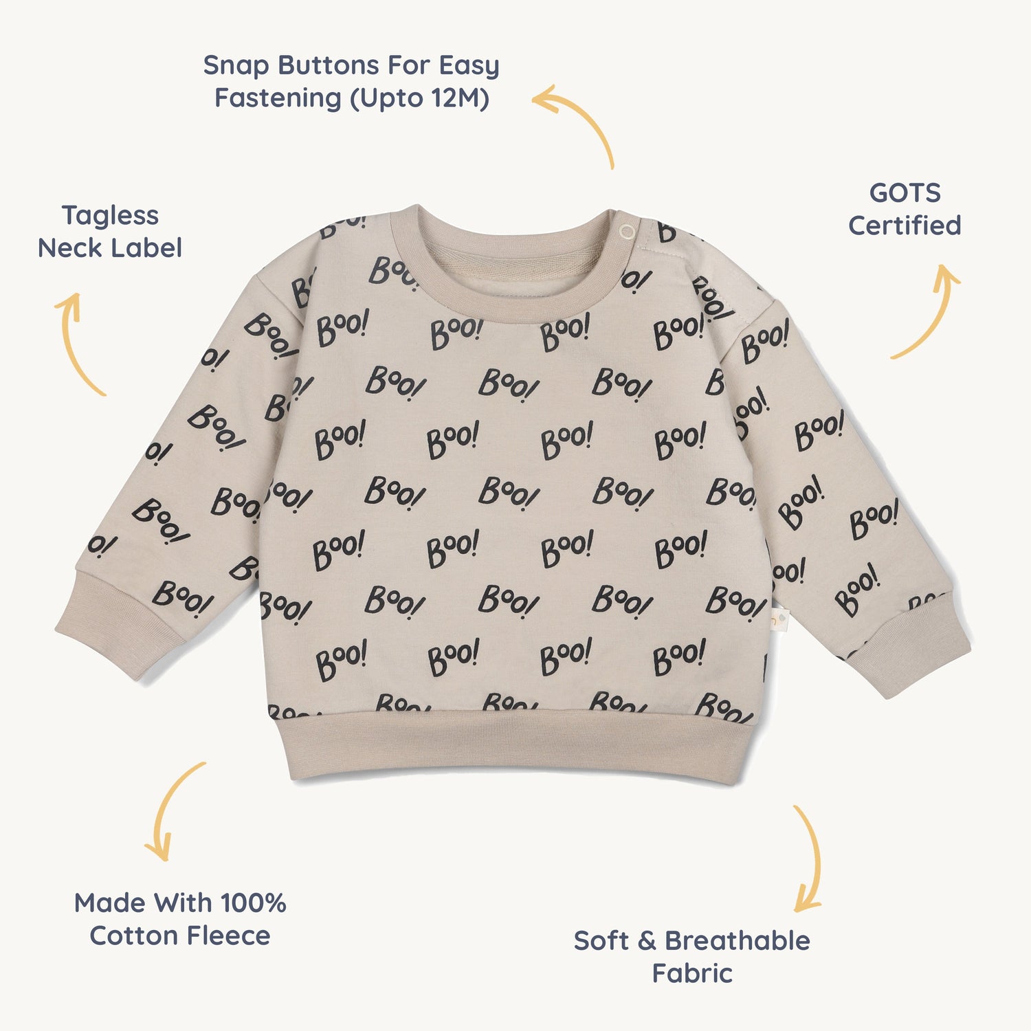 Organic Fleece Sweatshirt - Boo - 0-3M is backordered and will ship as soon as it is back in stock.