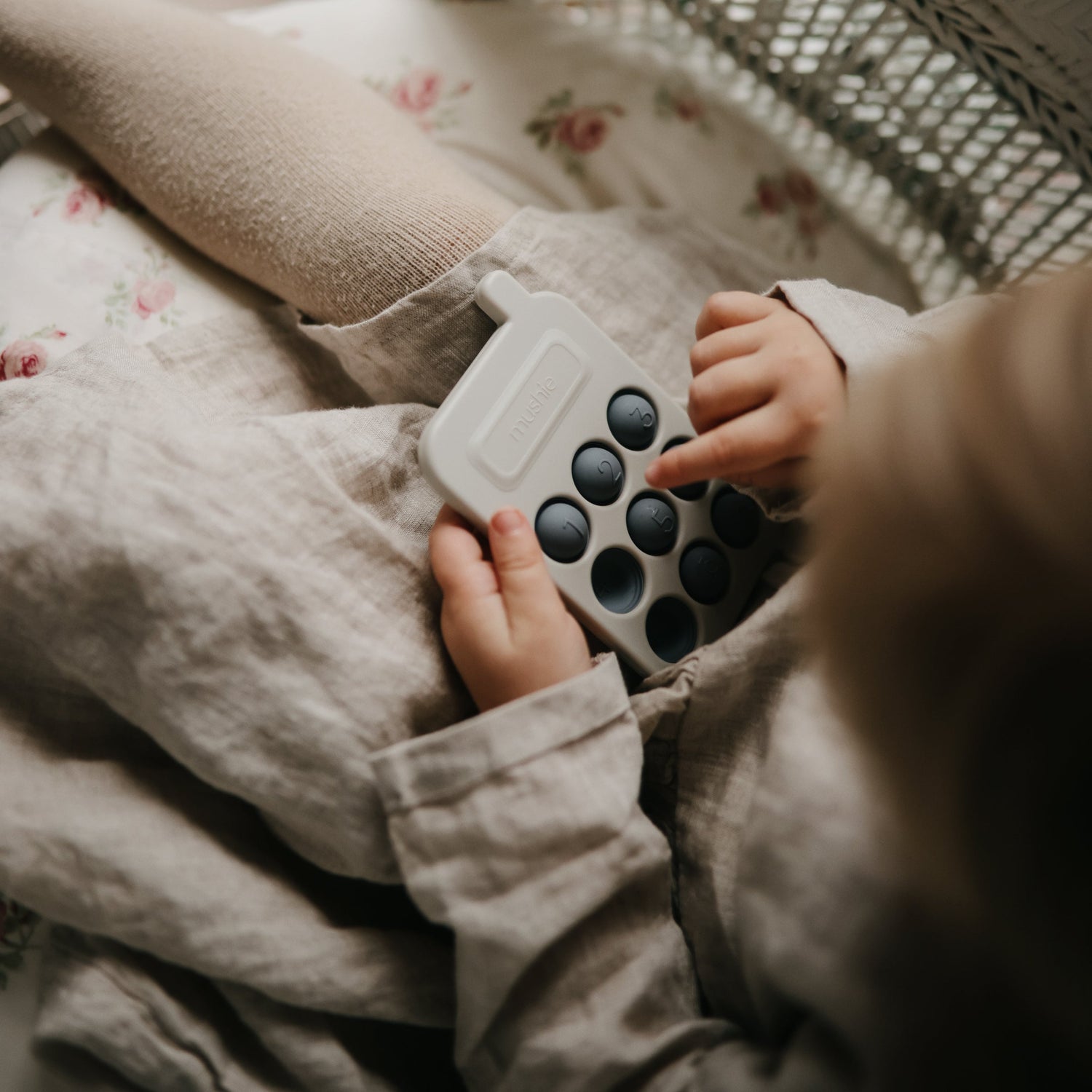 Made with little hands in mind, our phone press toy encourages sensory exploration and the development of fine motor skills with its simple design and soft colors. Featuring food grade silicone and a BPA-free plastic frame, children will tap into learning as they press the bubbles and hear a gentle pop.