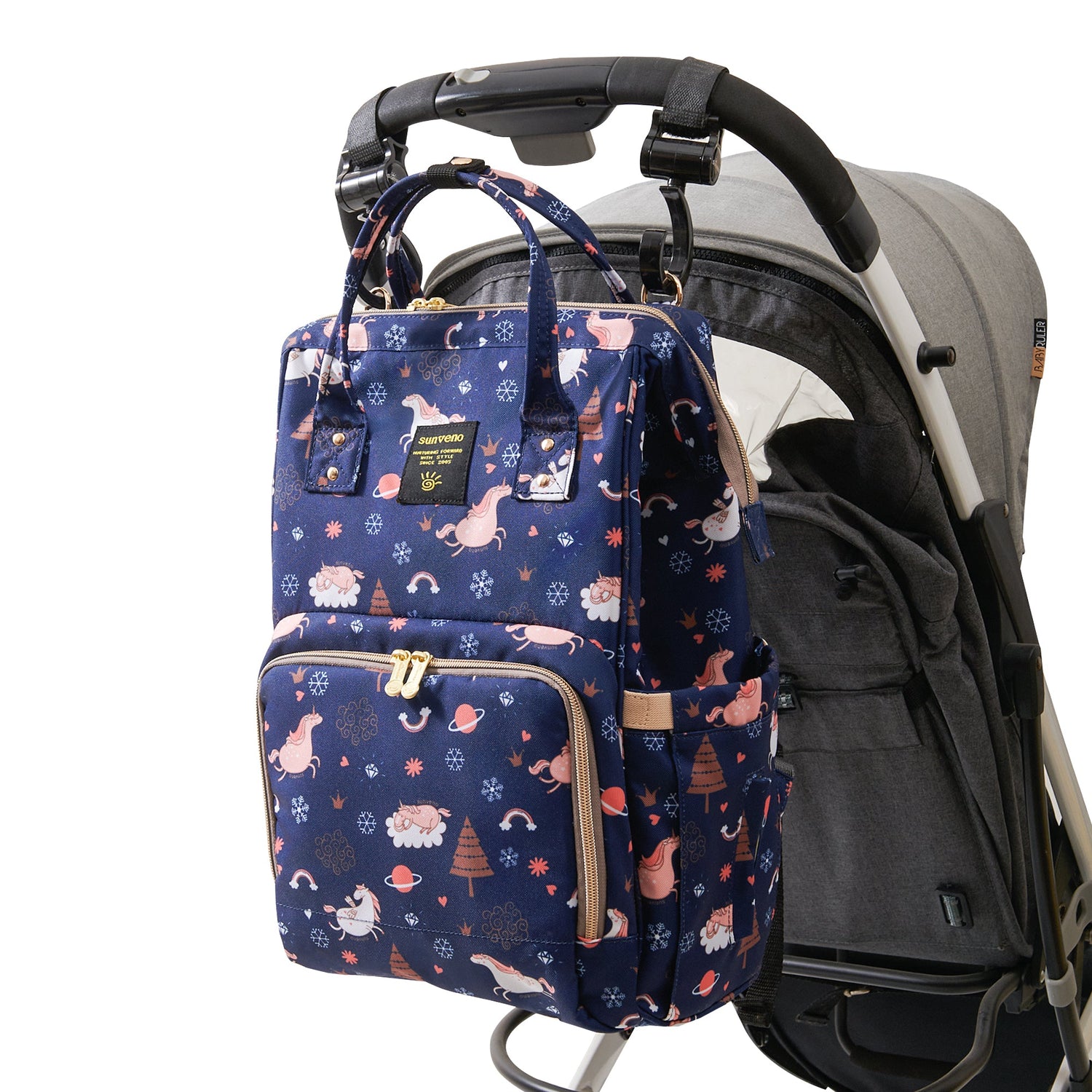 Timeless Baby Diaper Backpack - Navy Unicorn is backordered and will ship as soon as it is back in stock.