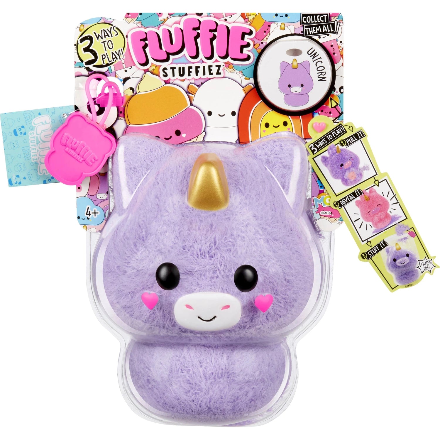 - Experience a fun interactive activity by pulling the fluff off your Fluffie Stuffiez and placing the fluff into the squishy pouch.