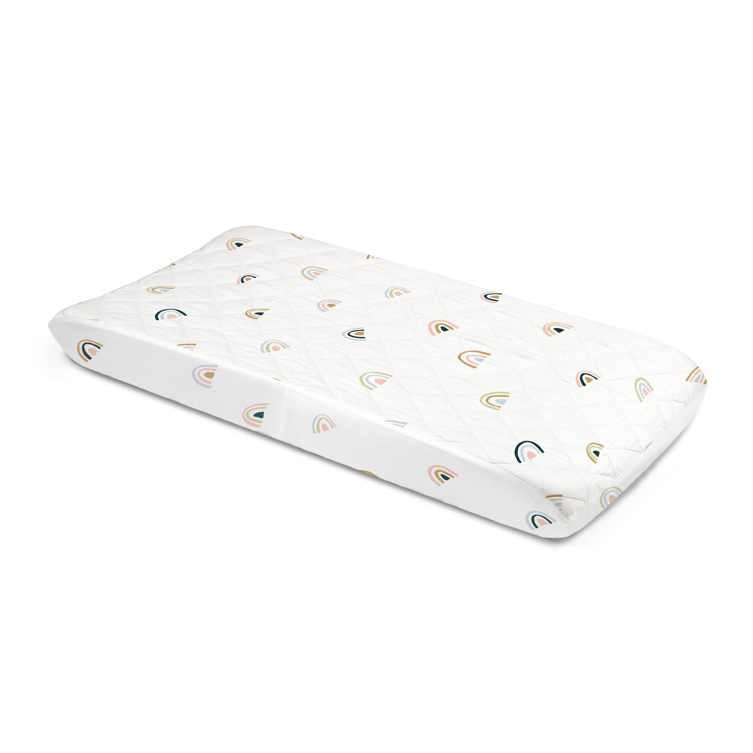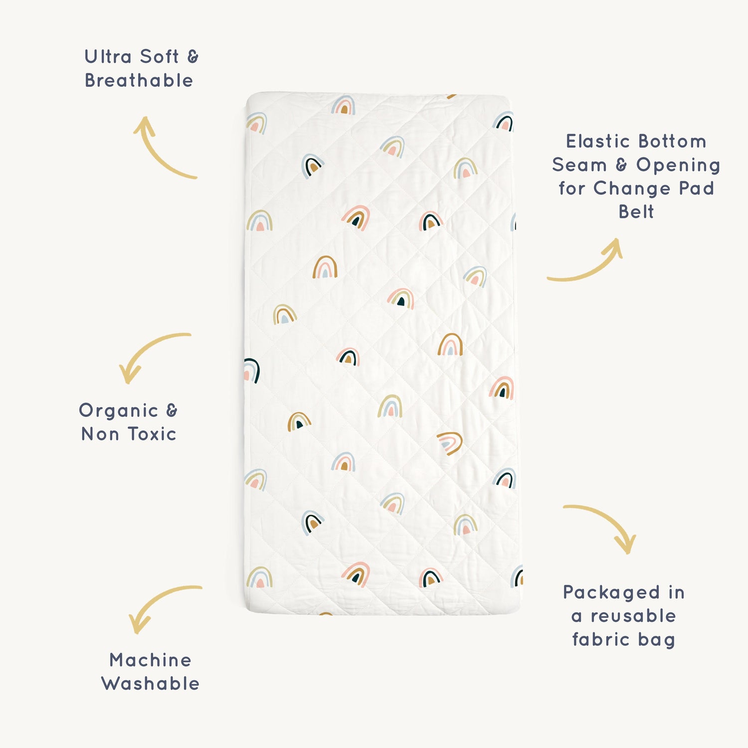 Who doesn't love a cute nursery! Add a touch of elegance to your changing station with our gorgeous quilted organic cotton changing pad cover. It always finds its place in the modern houses' decor. The cover, made of organic cotton sateen with organic cotton filling provides the softest surface and quietest comfort for your little one to get changed on. Gusseted construction and an elasticized hem makes it a great fit or most standard changing pads.