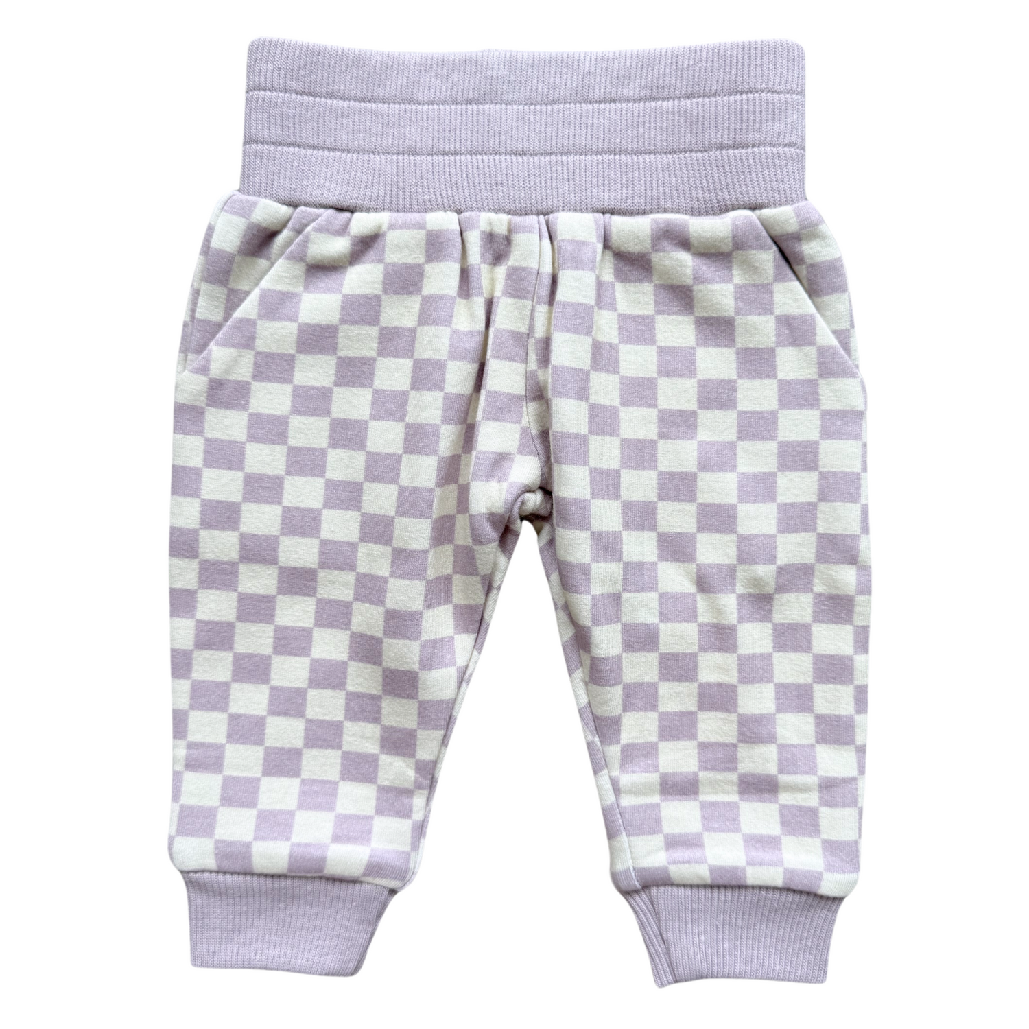 Fleece Sweatpants - Lavender Cloud Checkered / 0-3M is backordered and will ship as soon as it is back in stock.