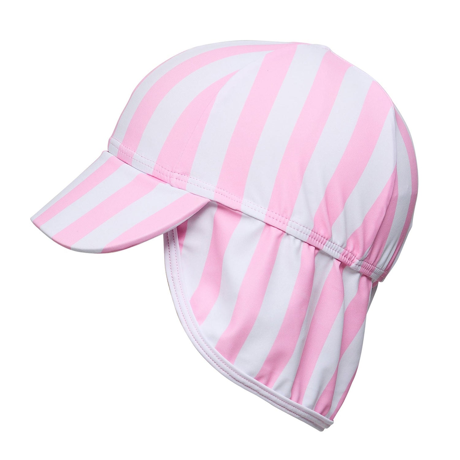 Cute in cotton candy and super handy: It's our Pink Stripe Floating Flap Hat. Fitted with a foam brim, a neck flap, and an elasticated band at the back, this baby sun hat is more than just comfortable - it's fully equipped to keep your little one's skin out of the sun.
