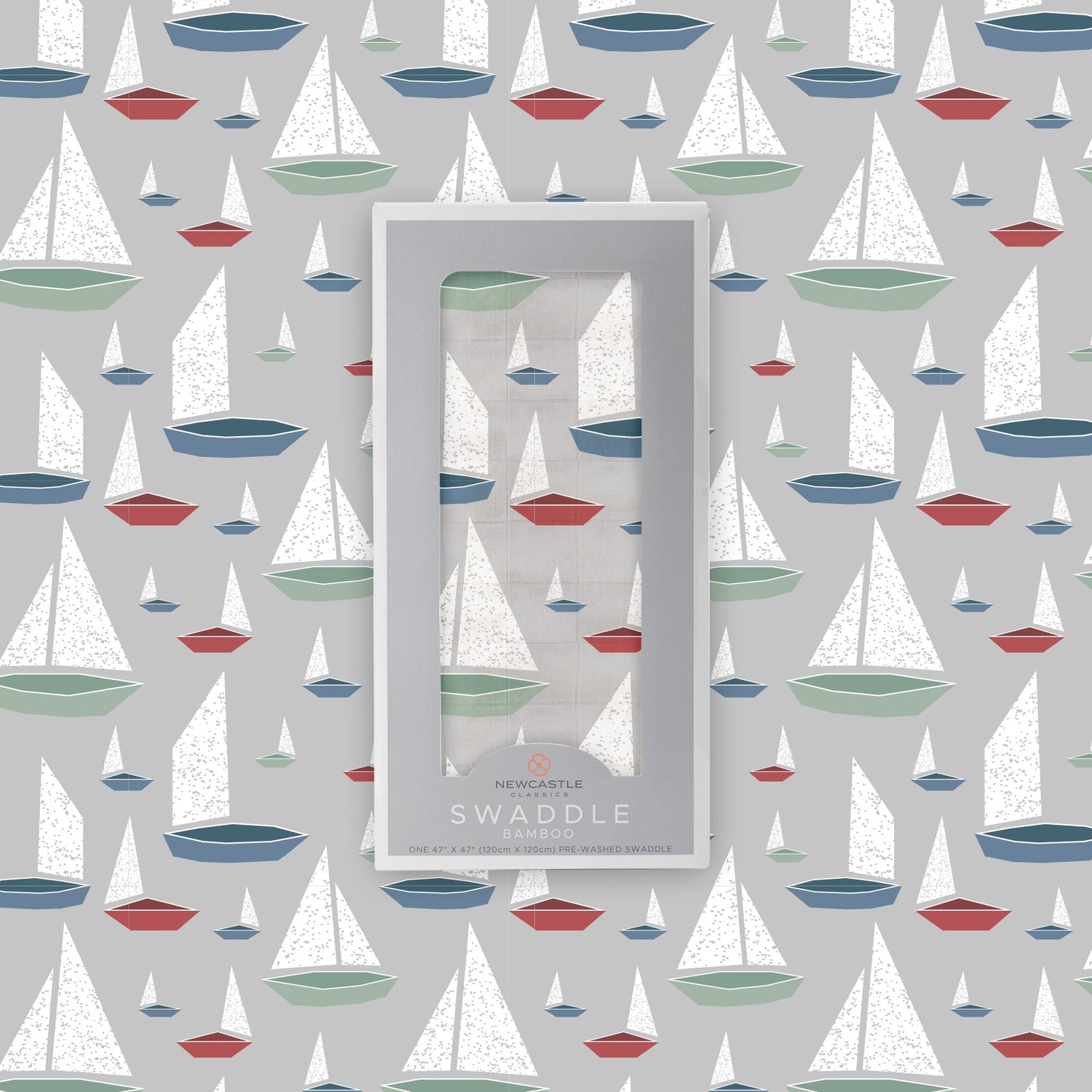 Marina Sailboats Bamboo Swaddle is backordered and will ship as soon as it is back in stock.