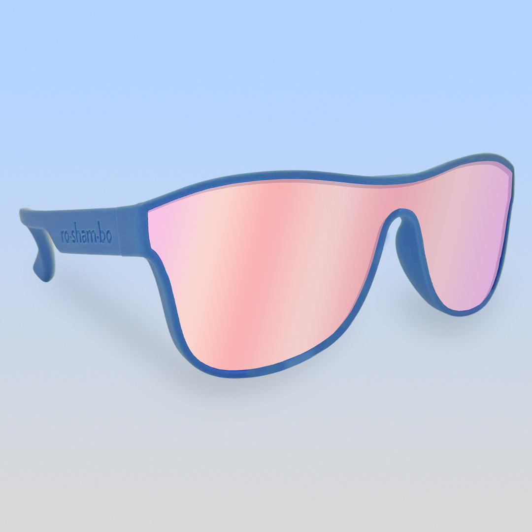 These Skywalker cloudy blue single shield toddler sunglasses are basically the greatest Jedi sunglasses the galaxy has ever known. Named after the coolest hang out of the Bayside High crew—The MaxRoshambo's newest style of sunglasses melds super-neon, fun-spirited frame colors and mirrored polarized lenses for the coolest combos!