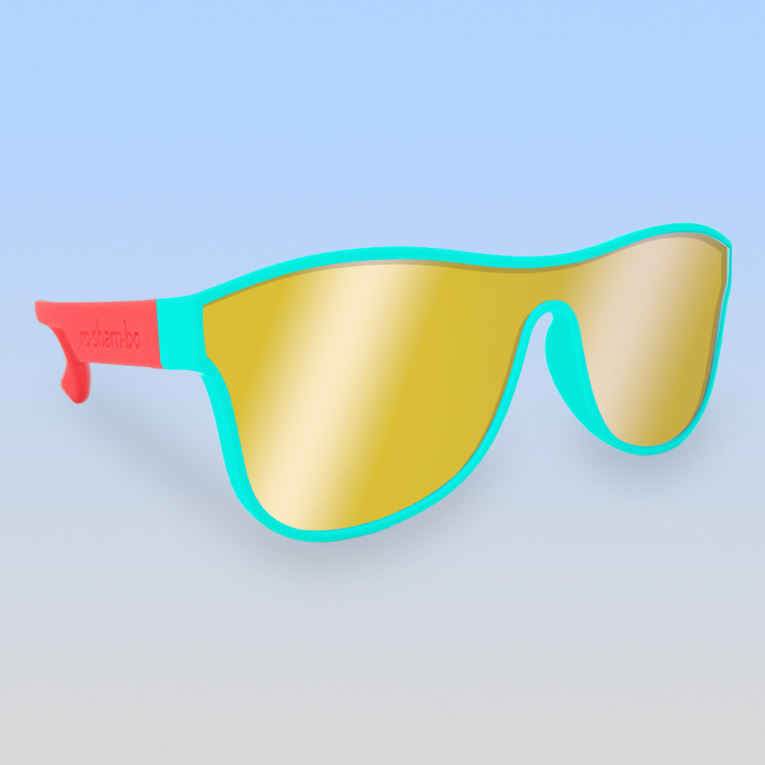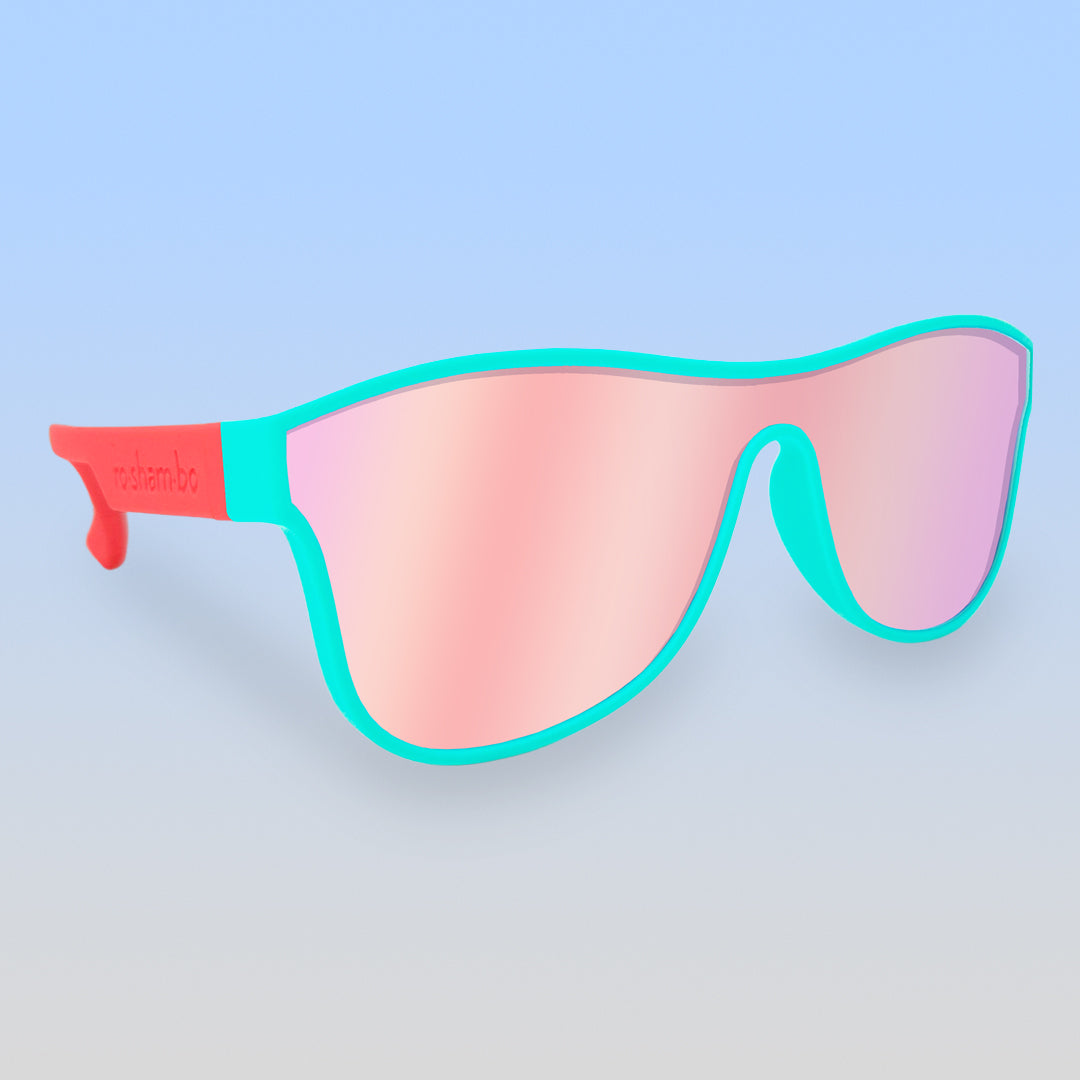 Not only do shield sunglasses make a bold fashion statement with one continuous lens, but they also provide excellent protection from the sun's harmful UV rays. All Roshambo frames are proudly made in Italy and assembled in the United States. They are BPA, phthalate, lead & latex free. Plus, they are virtually unbreakable... we offer a full damage replacement guarantee if they get broken!