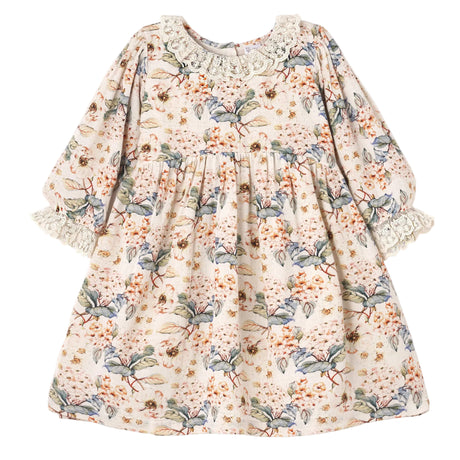 Linen Vintage Floral Dress with Lace Accents