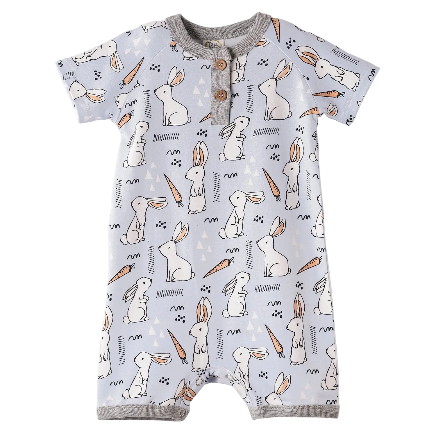 The playful bunny-and-carrot print adds festive fun, while button details at the neckline and bottom snap closures make dressing and diaper changes effortless. Naturally hypoallergenic and eco-friendly, it’s an easygoing essential for springtime comfort and cuteness.