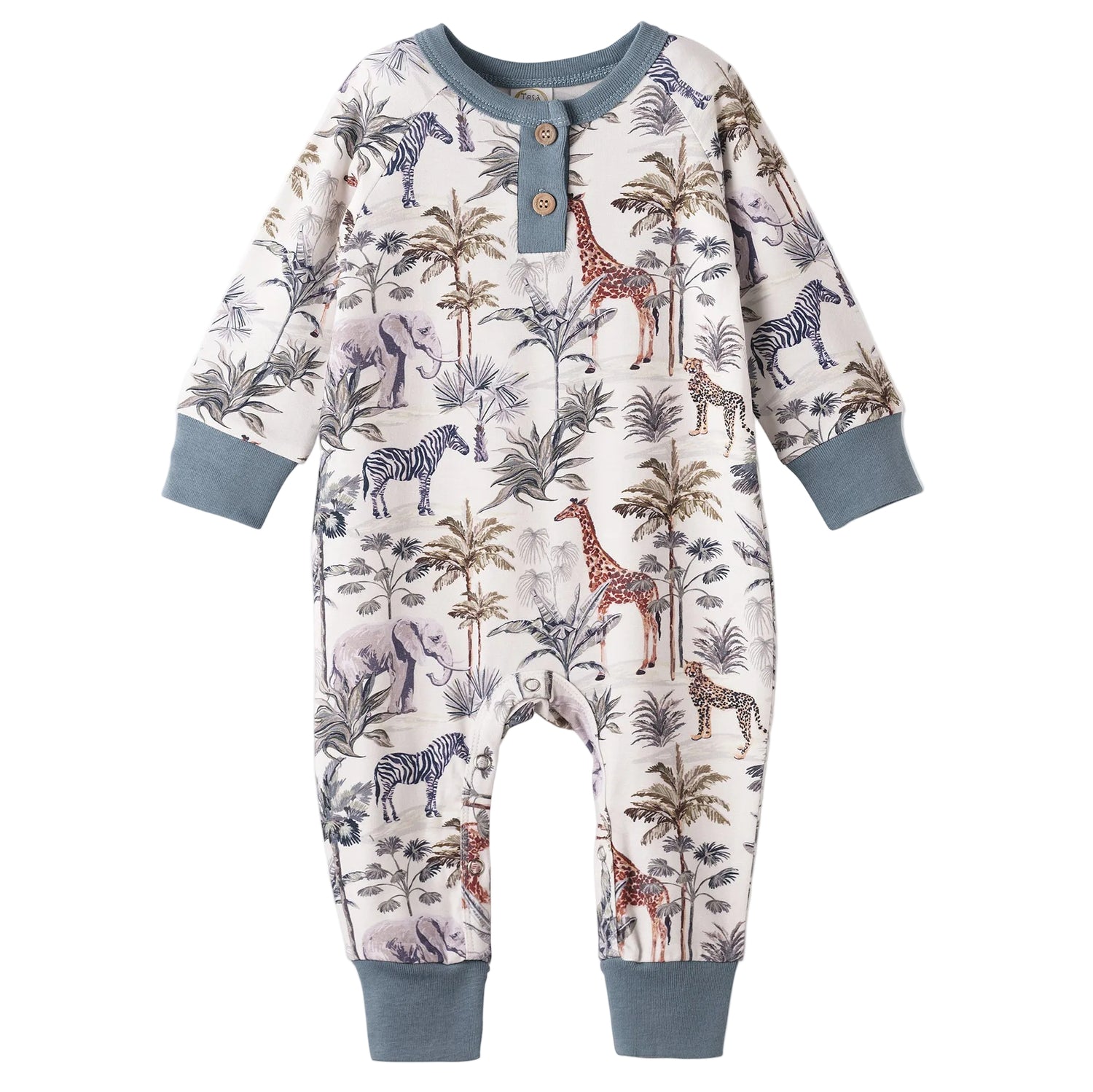 Jungle Safari Bamboo Boys Henley Romper - 0-3M is backordered and will ship as soon as it is back in stock.