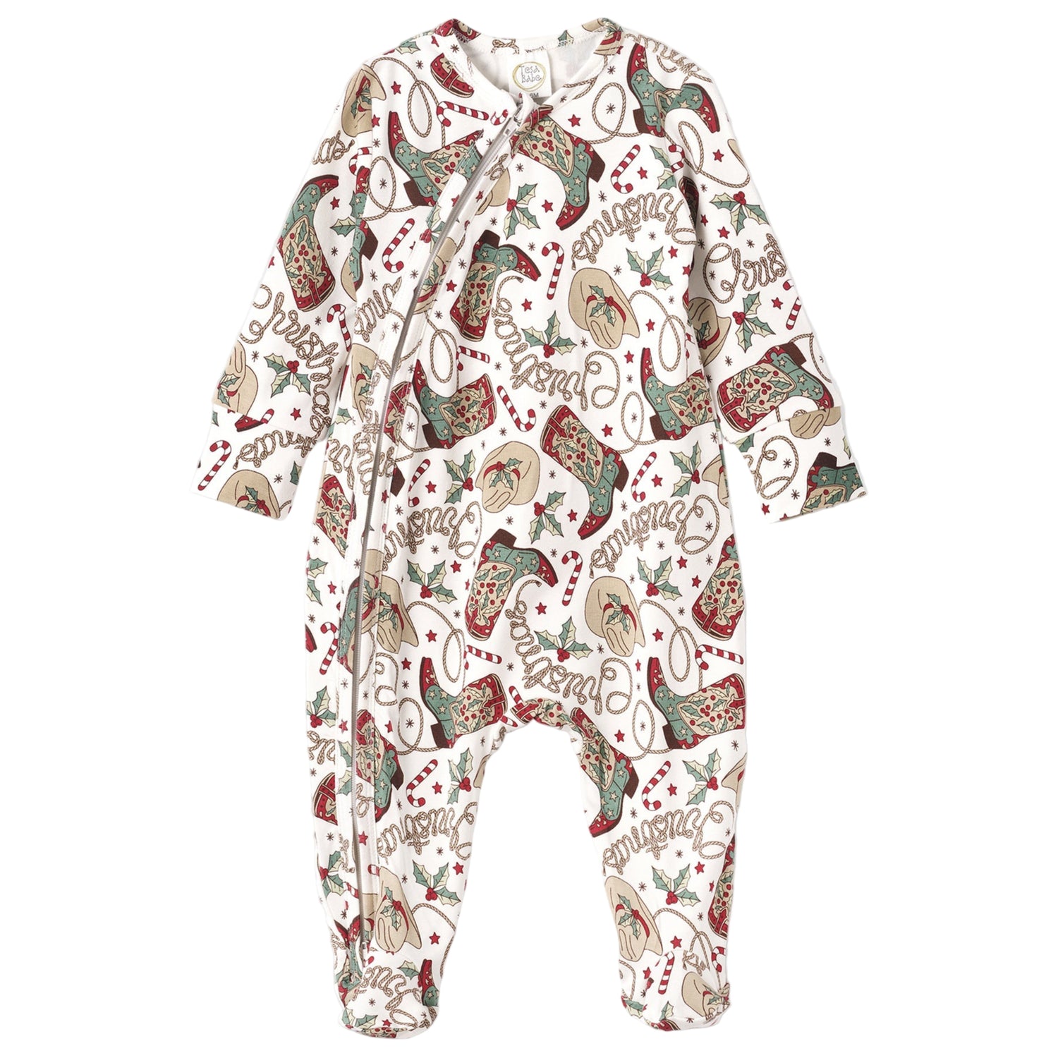 Western Christmas Baby Bamboo Zipper Romper - Cowboy Holiday