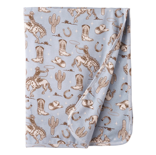 Wild Wrangler/Blue Western Baby Boy Bamboo Stroller Blanket