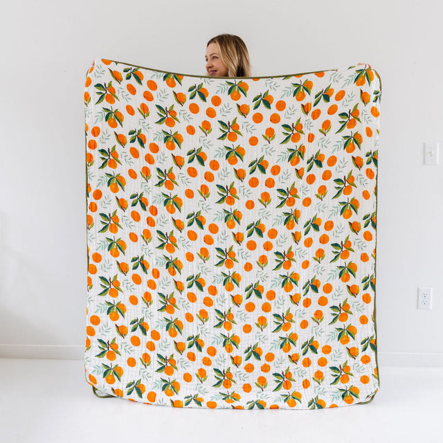 You asked, and we listened! Our clementine pattern is now available in our biggest size. Clementine Kids Throw Blankets are perfect for big kid beds (it will fit nicely on a twin!) or curling with a cutie and getting cozy on the couch.