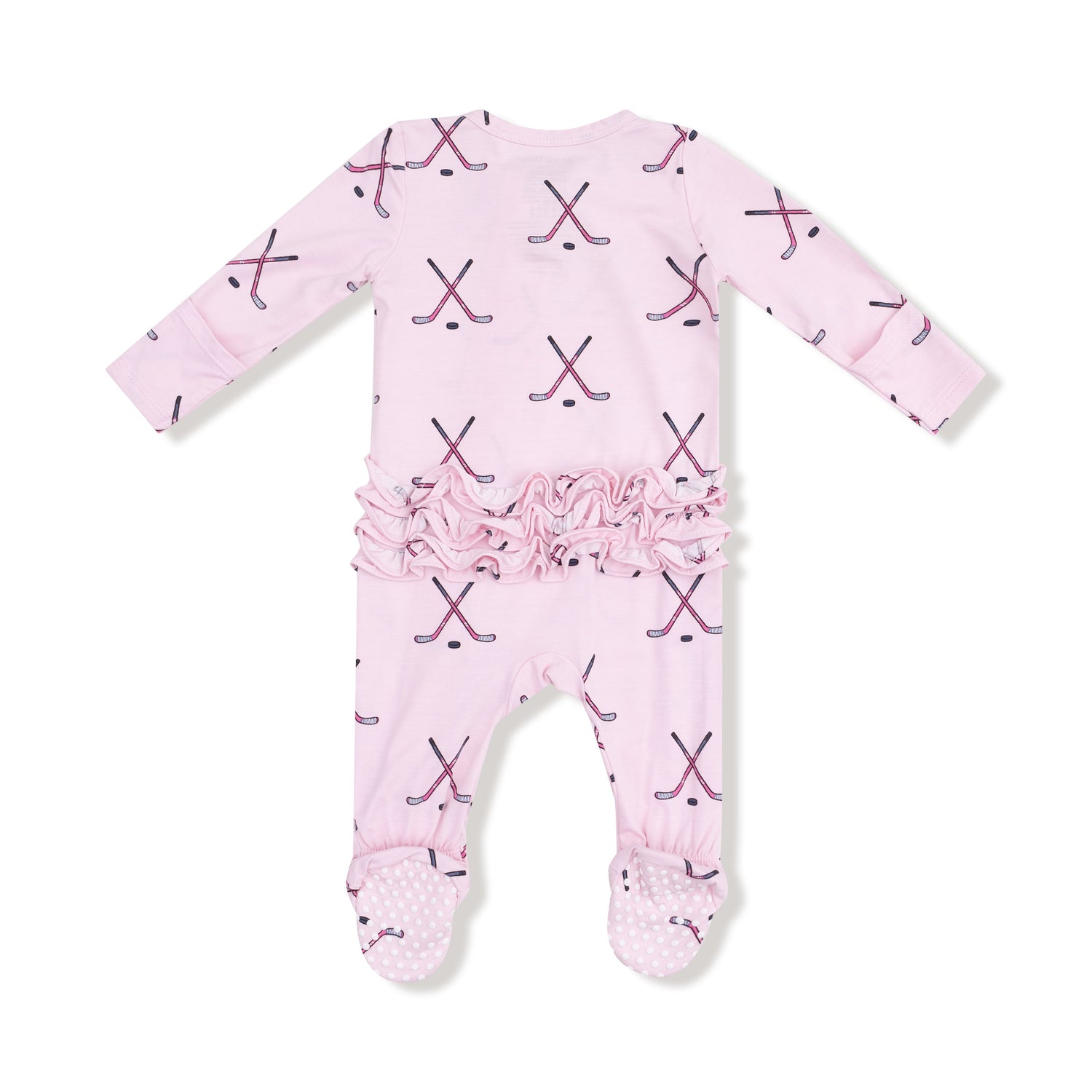 2 Way Zipper Ruffle Back Footie - Hockey - Pink