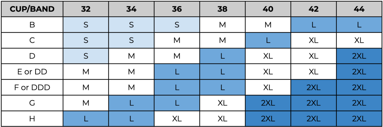 - Bra sizes: S, M, L, XL, 2XL