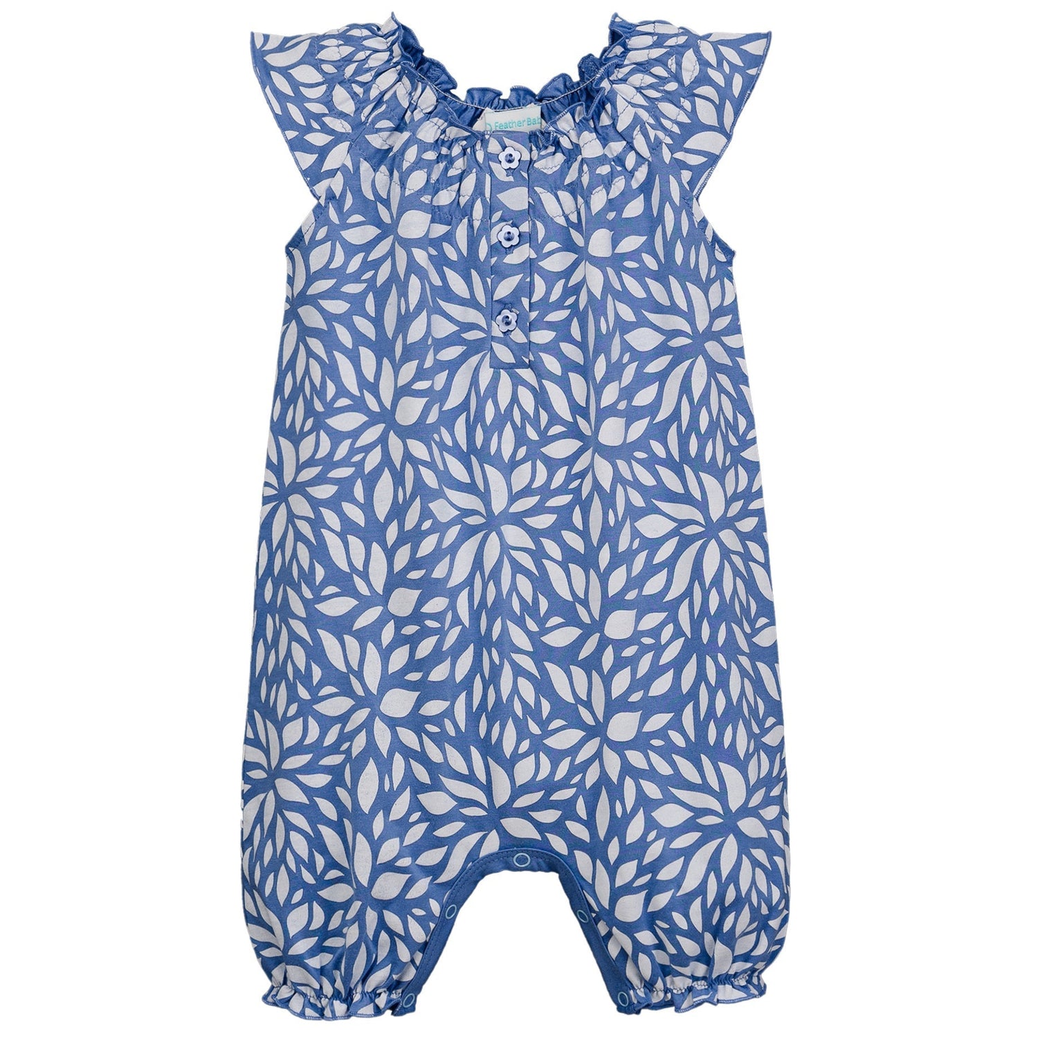 Three dainty flower-shaped buttons and a Henley-style neckline add a polished touch, while snaps along the inseam ensure quick diaper changes.