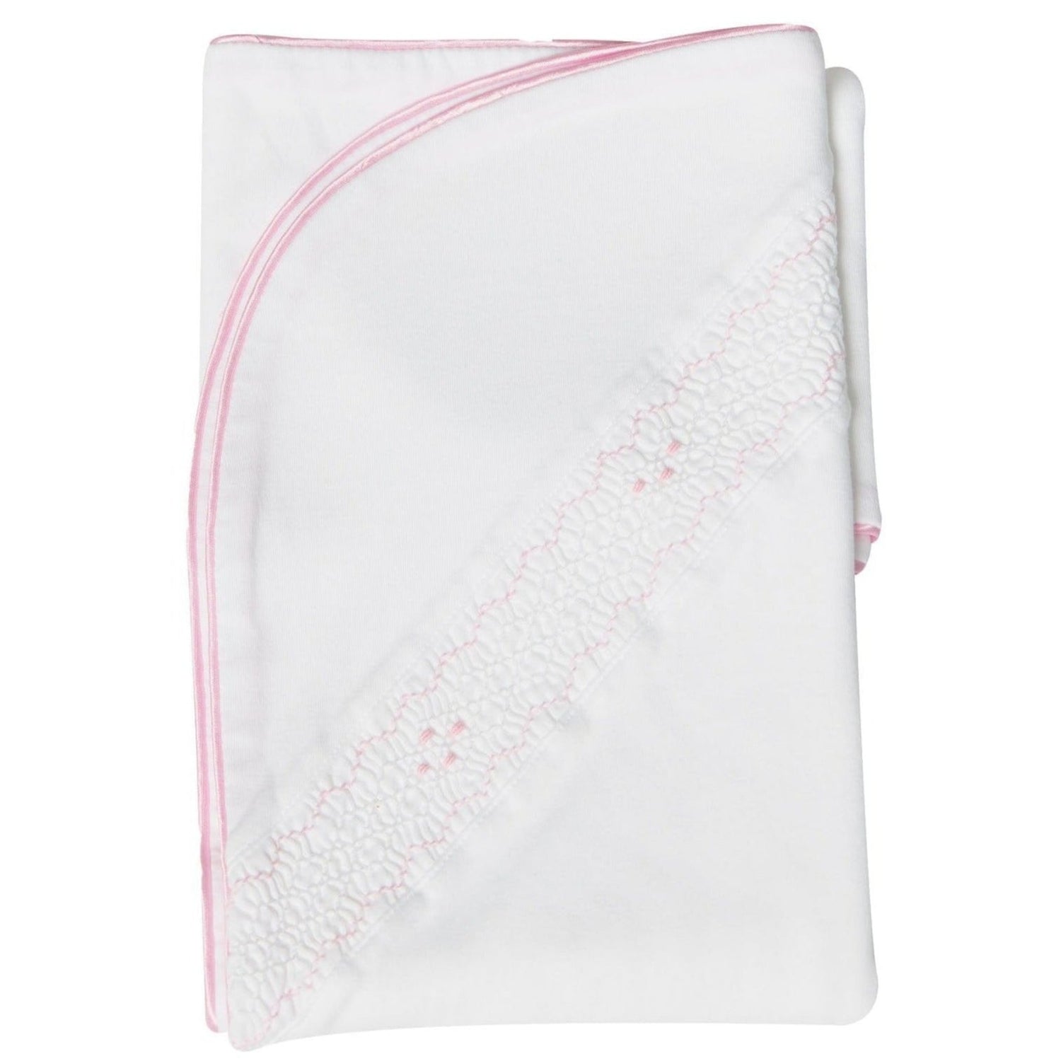 Silky and soft! This finely detailed baby blanket is made of extra soft pima cotton fabric. It has a perfect finish and smocked hand embroidery.