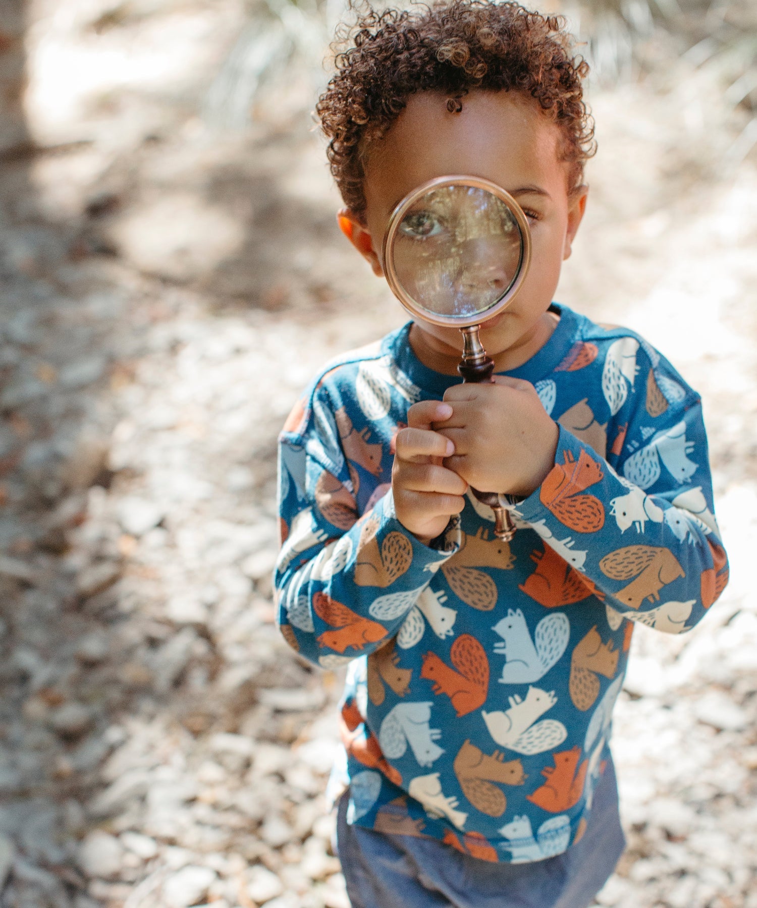 • All-over woodland squirrel print in earthy, gender-neutral tones