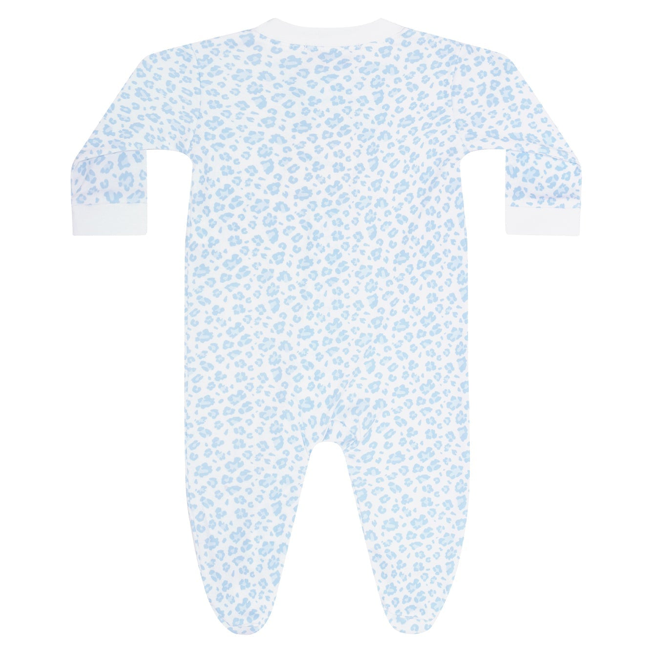 Blue Cheetah Print Zipper Footie - Blue / New Born is backordered and will ship as soon as it is back in stock.