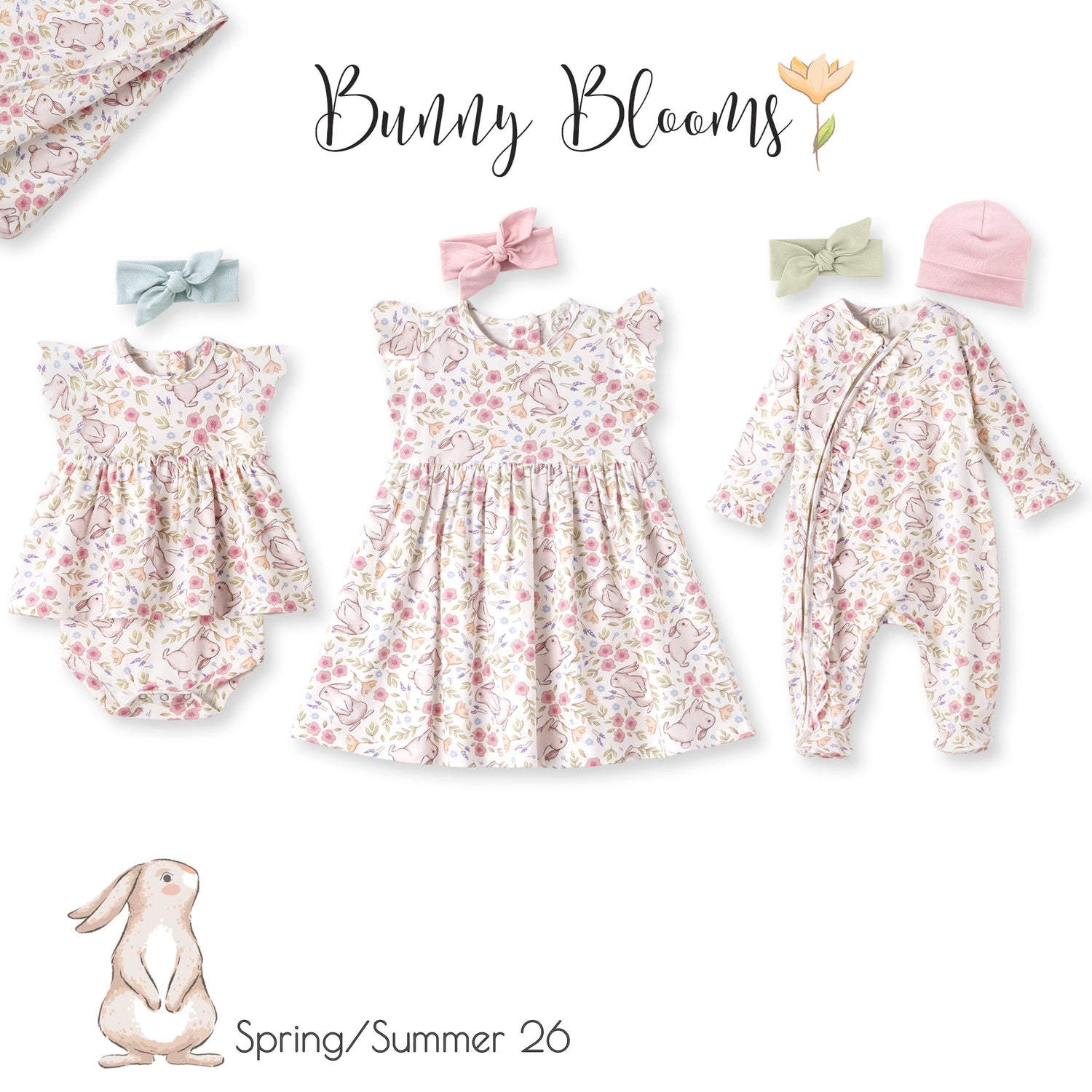 The Bunny Blooms skirted bodysuit is the perfect blend of softness and seasonal charm for baby’s first Easter. Made from a luxurious bamboo-spandex jersey, it’s naturally breathable, hypoallergenic, and gentle on delicate skin. Adorned with a sweet bunny-and-blooms print, it features flutter sleeves and a softly gathered skirt for a classic silhouette. Finished with back neck buttons and bottom snaps for easy changes, it’s a festive favorite designed for comfort and cuteness.