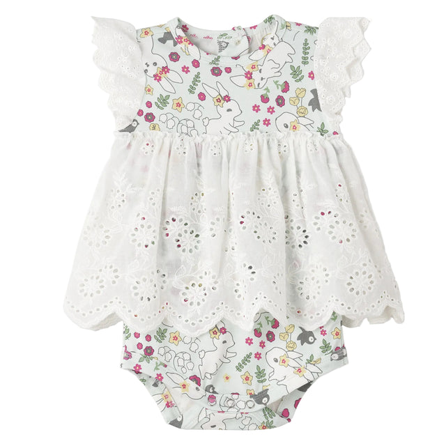 Bunny Garden Eyelet Skirted Bodysuit – Baby Girl One-Piece