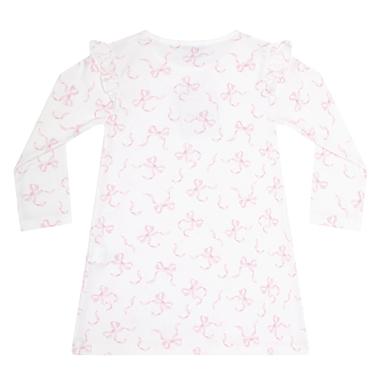 A playful yet refined piece, this dress is perfect for daytime outings, family gatherings, or casual playdates. Made from ultra-soft Pima cotton, it features fluttery sleeves, a comfortable fit, and our signature pink bow print. Style it with a matching hat or blanket for a complete look.