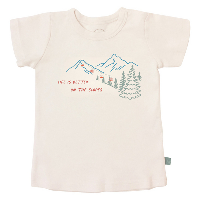 Because your little one was born for adventure! Our Life Is Better on the Slopes organic toddler tee brings mountain vibes to everyday play. Made from 100% certified organic cotton, it’s soft, safe, and sustainably crafted for comfort that lasts all season. Featuring our exclusive hand-drawn mountain and ski lift design, this cozy winter tee is perfect for tiny snow lovers—on or off the slopes