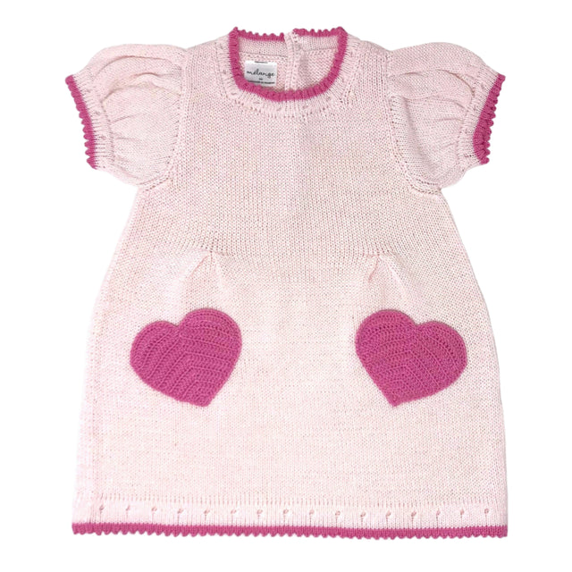 Two festive hearts make fun pockets. Perfect dress for your little Valentine!  This dress also matches the pink Valentine baby hat.