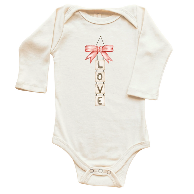Love Blocks Bow Organic Baby Bodysuit Long Sleeve